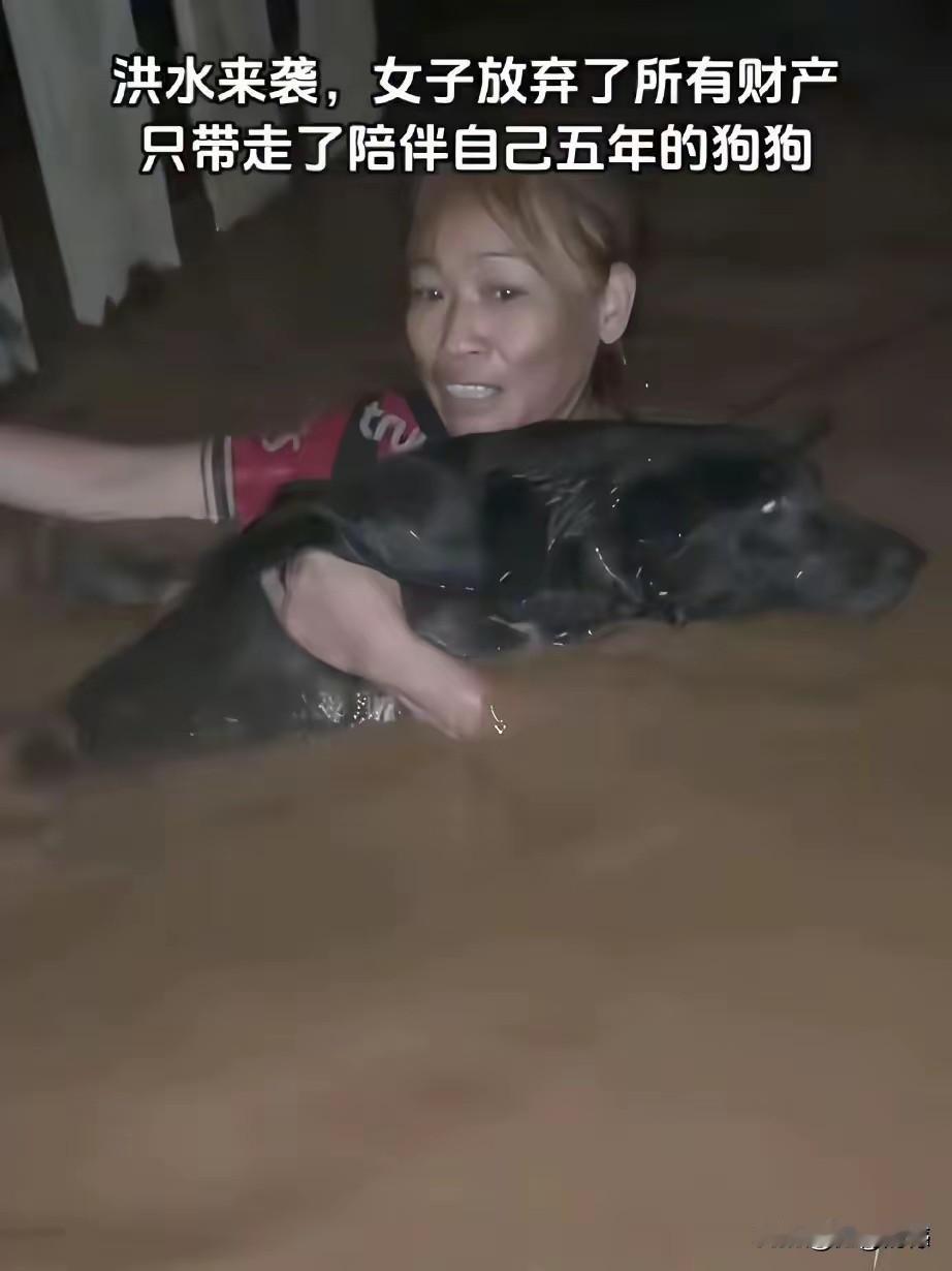这个女子是真正的喜欢狗,通过长期养狗,人和狗之间已经产生了感情,在洪灾来临之时,女子首先想到的是把狗救出来,这是对生命的敬畏,这是对自己宠物的一份心情,难以割舍,有一分能力,必须要把它救出来,作为一个养狗人士爱狗人士,非常理解这个女子的心情,如果我要是遇到类似的情况,也会做出这样的选择,这是毫不犹豫的事情!