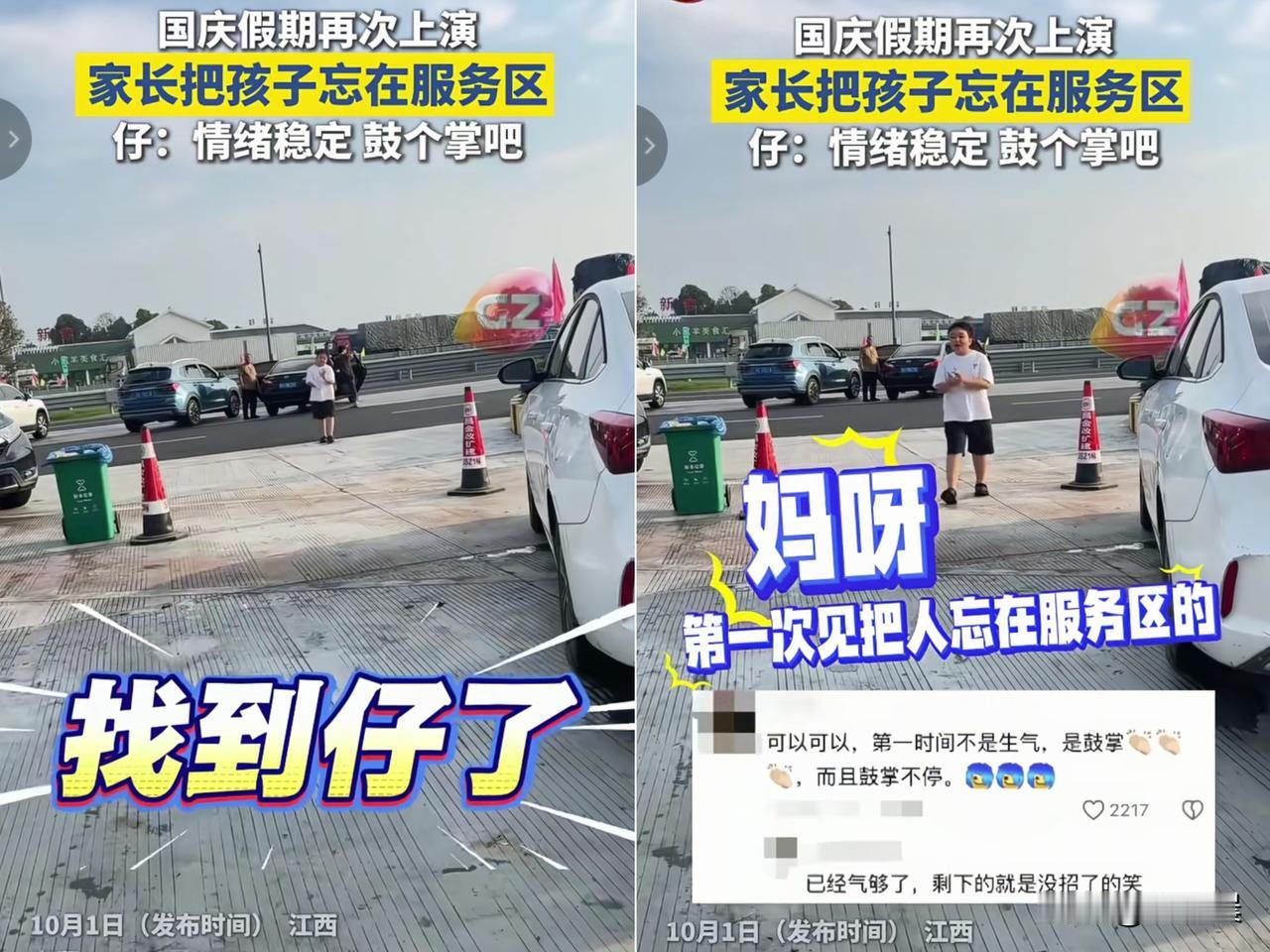 笑不活了! 亲妈为了尽快跟闺蜜逛街, 居然把亲儿子忘在高速服务区,自己 踩油门上了高速!这操作真的看傻我了。 但更绝的是这“小孩哥”,站在原地等了半小时不见人,没哭没闹,淡定打了电话,听到亲妈把自己忘了也没炸毛。 等妈妈火急火燎赶回来,他居然慢悠悠走过去,一边鼓掌一边吐槽“第一次见把人忘服务区的”。 网友都夸孩子情绪稳定,可我越想越心惊。 这哪是孩子懂事,分明是家长的“心大”把孩子逼出了松弛感。 都说父母要“先爱自己”,但爱自己绝不是把孩子的安全抛在脑后。 服务区车多人杂,万一出点意外,再后悔都没用。 孩子的冷静是运气,但家长的细心才该是底线。别让喜剧变成悲剧啊! 你们带娃出门都有过哪些“惊险瞬间”?