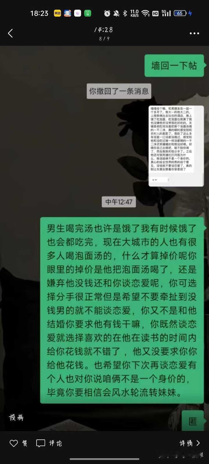 你的学校发生过最扯的事是什么? 就感觉每个人在学生时代都会有一些事情。 错例1:我们学校有个哏,只有我们学校懂。(出门左转) 错例2:我被张老师给殴打,可是没人理我,大家帮我评一下理(这个属于维权) 错例3:我们福州49中,有一天同学不小心加了一笔,变成了逼州49中(这个属于建筑物搞笑类型)PS:福州正好没那么多,所以拿49来做例子。 表白墙,因为吃面喝汤吵起来了。 具体缘由是因为男朋友吃了面之后把汤喝完了,女方很不爽,觉得很掉价。 于是乎。。。这个帖子就要炸了。。。因为这简直是泼天带来的流量啊。男女对立的话题一直在社会中屡见不鲜,而且流量可以说就没低过了 而且所有人都在有意无意的分别性别。已经将性别化为了一类人群。 学校的正义使者当仁不让看不下去了。不过女方确实属实属于偏激的状况,一时脑热发在了表白墙这种公众平台。也有可能是她完全没有意识到会被群体网暴这种现象,认为大多数人肯定会站在他的一面,除了很多男生以外,但是这个评论有很多女生是支持男方的。 因为就以正常人的角度来说,女方的行为肯定是有点高端了。当时的任何人看完估计都比较炸裂。 但是无论怎样,不同的性别总会有很公正的一面。也许改变不了社会环境,但是自己由内而发的意识是不可多的美德。 所以就很多人也跟风慕名而来,发了很多阴阳贴。当然表白墙这种风气也是很正常的,表白墙带来了一波流量。也让整个学校起了一场风波,当时整个学校都在传吃面喝汤的事情。就好像冬至吃饺子一样,面的销量突然就高了,而且还都光盘了。 然而自此之后我就把表白墙屏蔽了。太掉智了,我觉得仁者见仁,智者见智吧。
