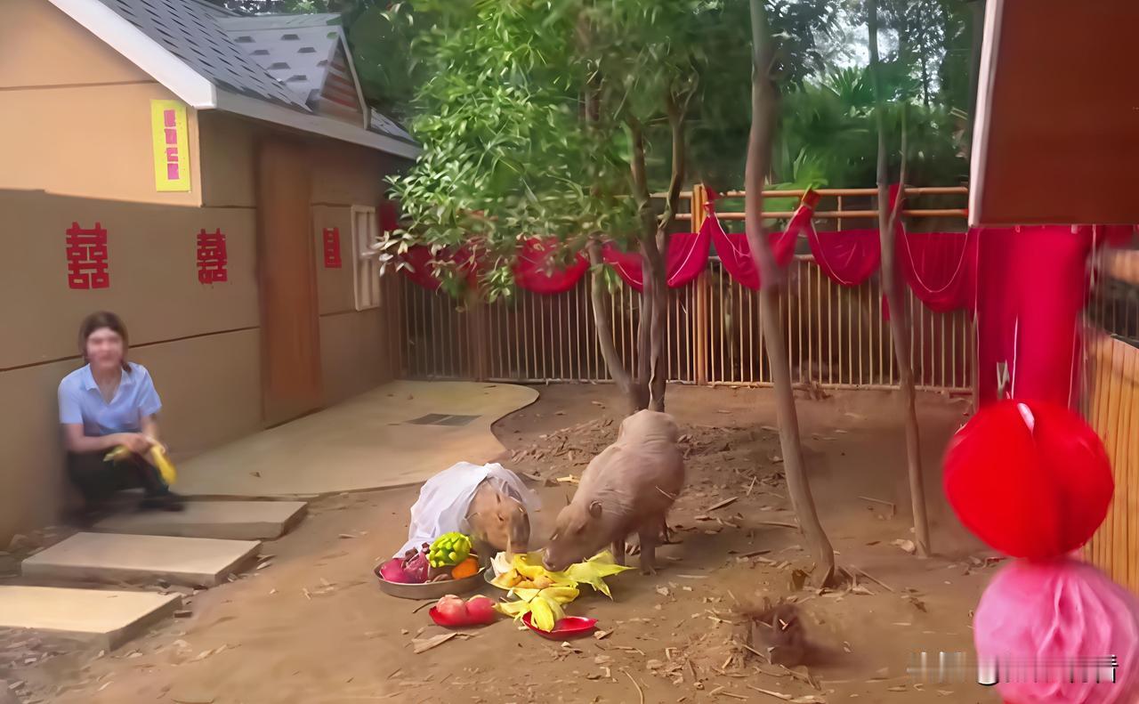 官宣:豆包结婚啦!10月7日上午9:58,扬州茱萸湾动物园为水豚“豆包”与“核桃
