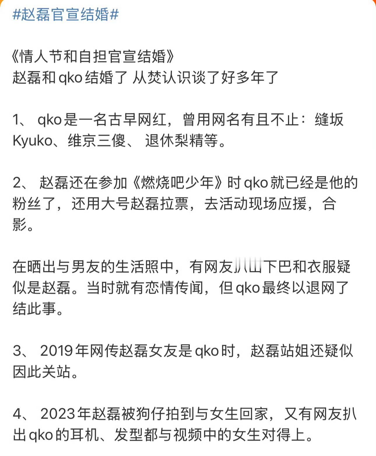 赵磊说和qko在一起十年了那就是2016年赵磊参加《燃烧吧少年》时在一起的,粉丝