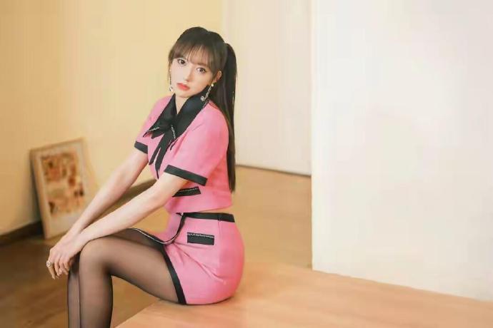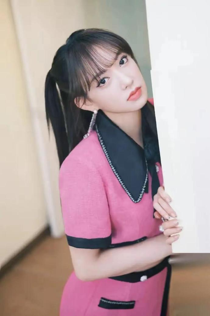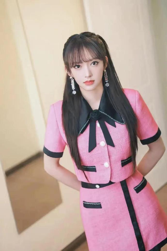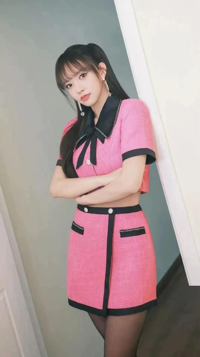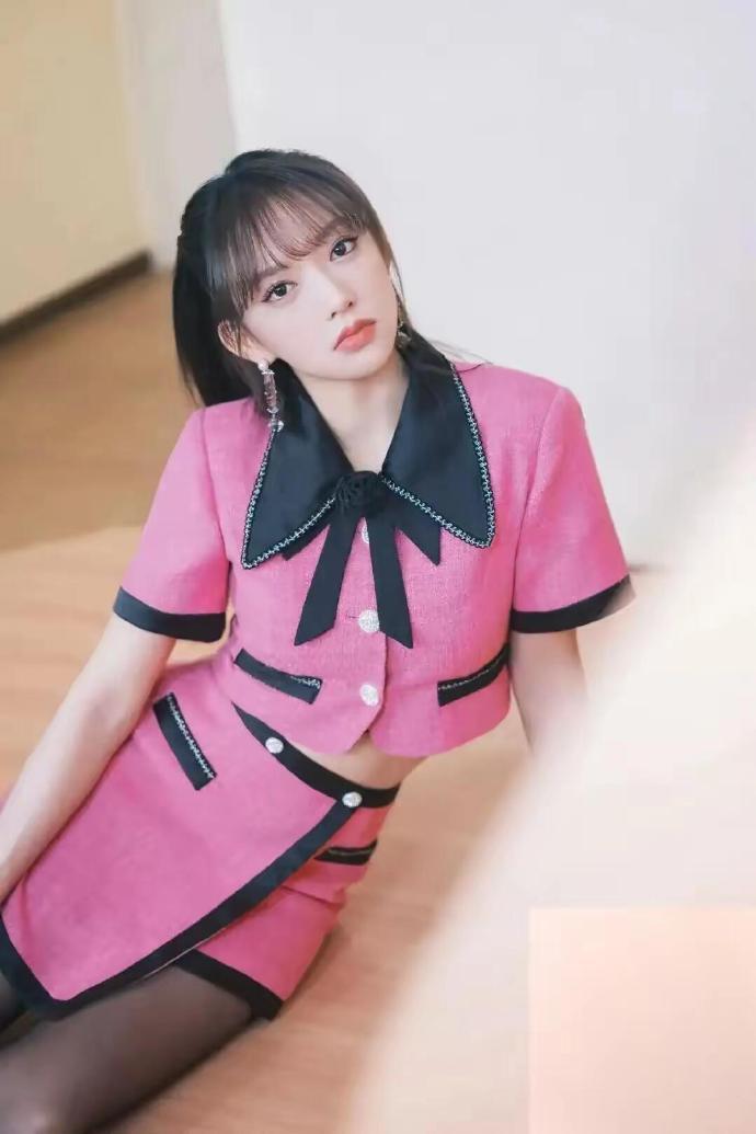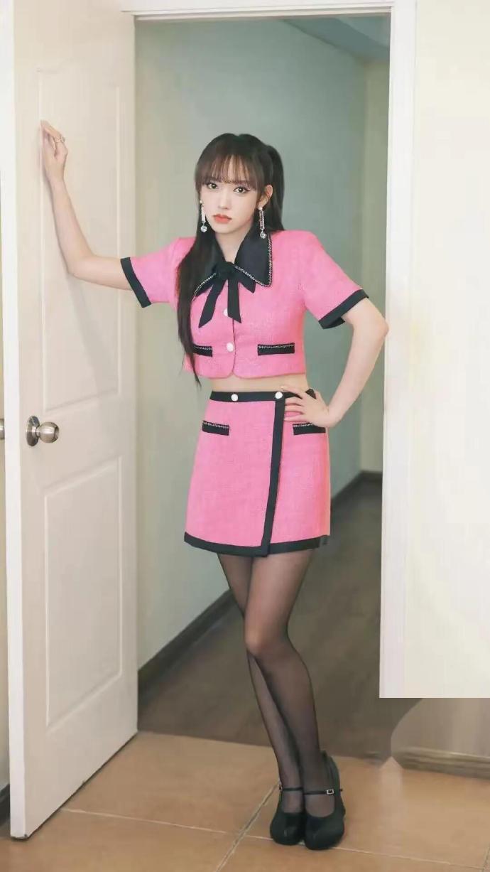 程潇粉色短裙配黑S,又纯又欲,太美了…