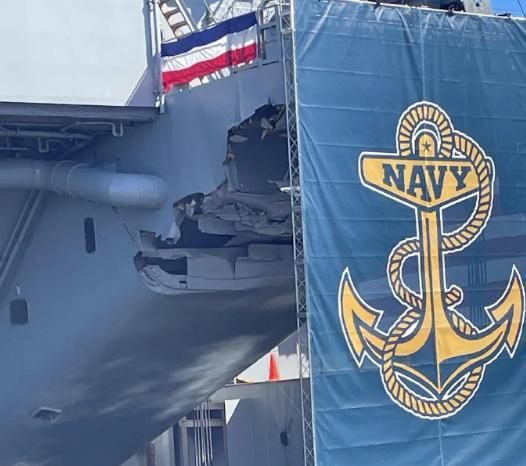特朗普登上杜鲁门参观,却露出这一尴尬位置 美国当地时间10月5号,总统特朗普和老婆前往弗吉尼亚州诺福克海军基地出席美国海军成立250周年纪念活动,并且专门登上了杜鲁门号航空母舰,现场发表讲话。还专门跳了一小段舞蹈,大大活跃了现场气氛。 不过从现场传回的画面中却出现了一个非常有意思的细节,杜鲁门号航空母舰用一块专门的旗帜遮挡住了自己的一个位置。 长期关注美国航空母舰动向和相关事件的朋友们应该还有印象,这艘航空母舰在8个月前和一艘商用船只发生了碰撞,导致船身受到了一定程度的损伤。特朗普出席活动现场的那面旗帜背后实际上就是被撞坏的战舰表面。其实战舰相撞这本不是什么新奇的消息,每一个拥有海军的国家几乎都不可避免这样的事故。 但是这件事情距离现在已经过去了整整8个月,航空母舰可是这个超级大国的战略平台,8个月的时间里居然还没有修好这种表面的破损,还专门拿出旗帜遮挡一下,怕总统看到。这也是没谁了。