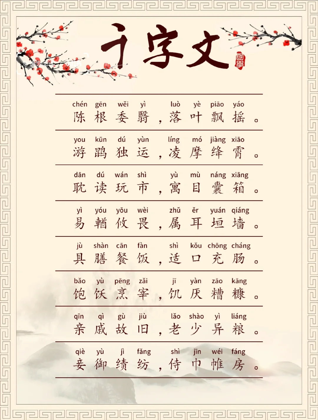 《千字文》是影响我国很大的儿童启蒙读物