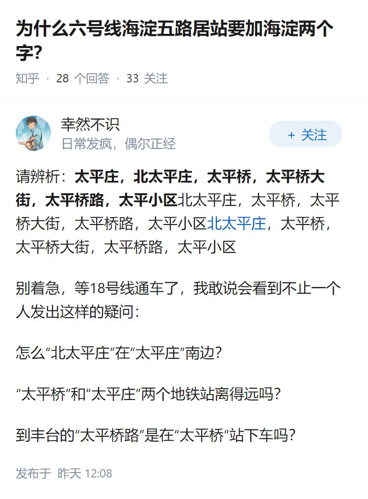 为什么六号线海淀五路居站要加海淀两个字?