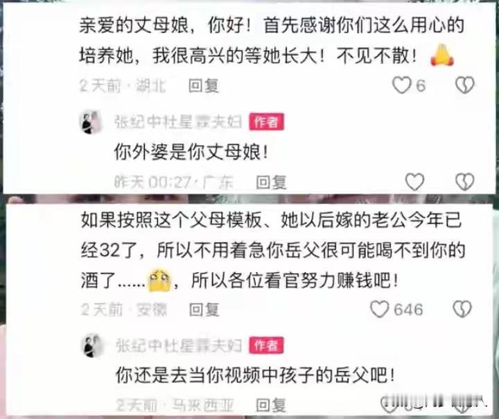 有网友玩梗简直是毫无底线,直接惹火了张纪中,他在评论区开撕,这些网友真的是有些过分了 张纪中有违公众正常婚姻的价值观,“老牛吃嫩草”找了个年轻媳妇,这在现实生活中,确实是有点争议!因为太有违大众的三观了,毕竟张纪中年龄比他现任的老婆要大的多了,可以当她父亲,爷爷辈的人了! 但这也不是网络上的黑嘴,可以调侃张纪中一岁女儿的理由! 张纪中和普通父亲一样,面对自己一岁的女儿被网友玩梗,他不生气才怪。 个人觉得,对事不对人,祸不及家人,张纪中他的女儿才一周岁多,就在他评论区有人说想当他女婿,真的是很不适合! 人家才是一岁的孩子,你就算看不惯张纪中老牛吃嫩草,也要等人家女儿成年后,再去评论区嘲讽、玩梗人家。