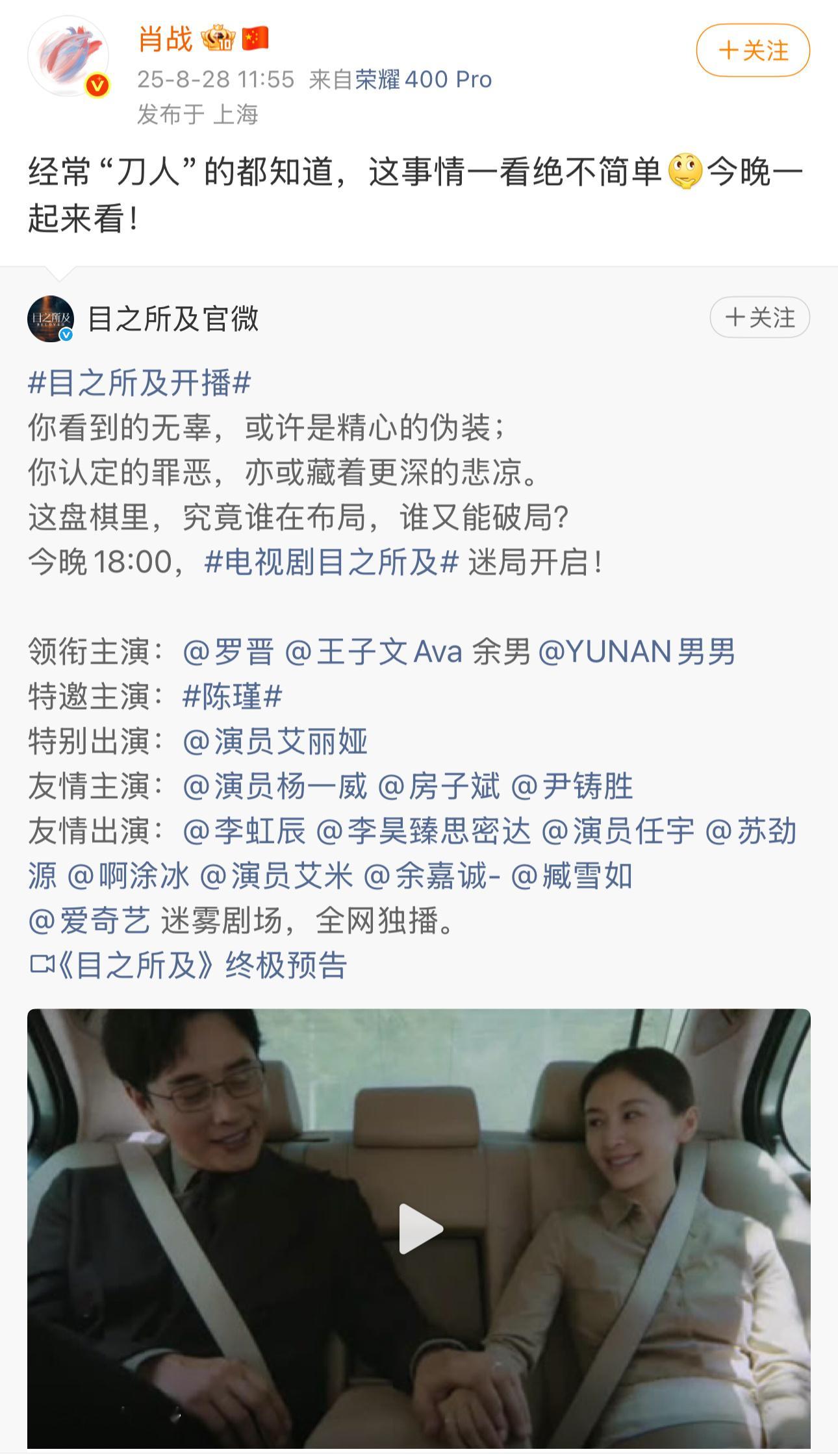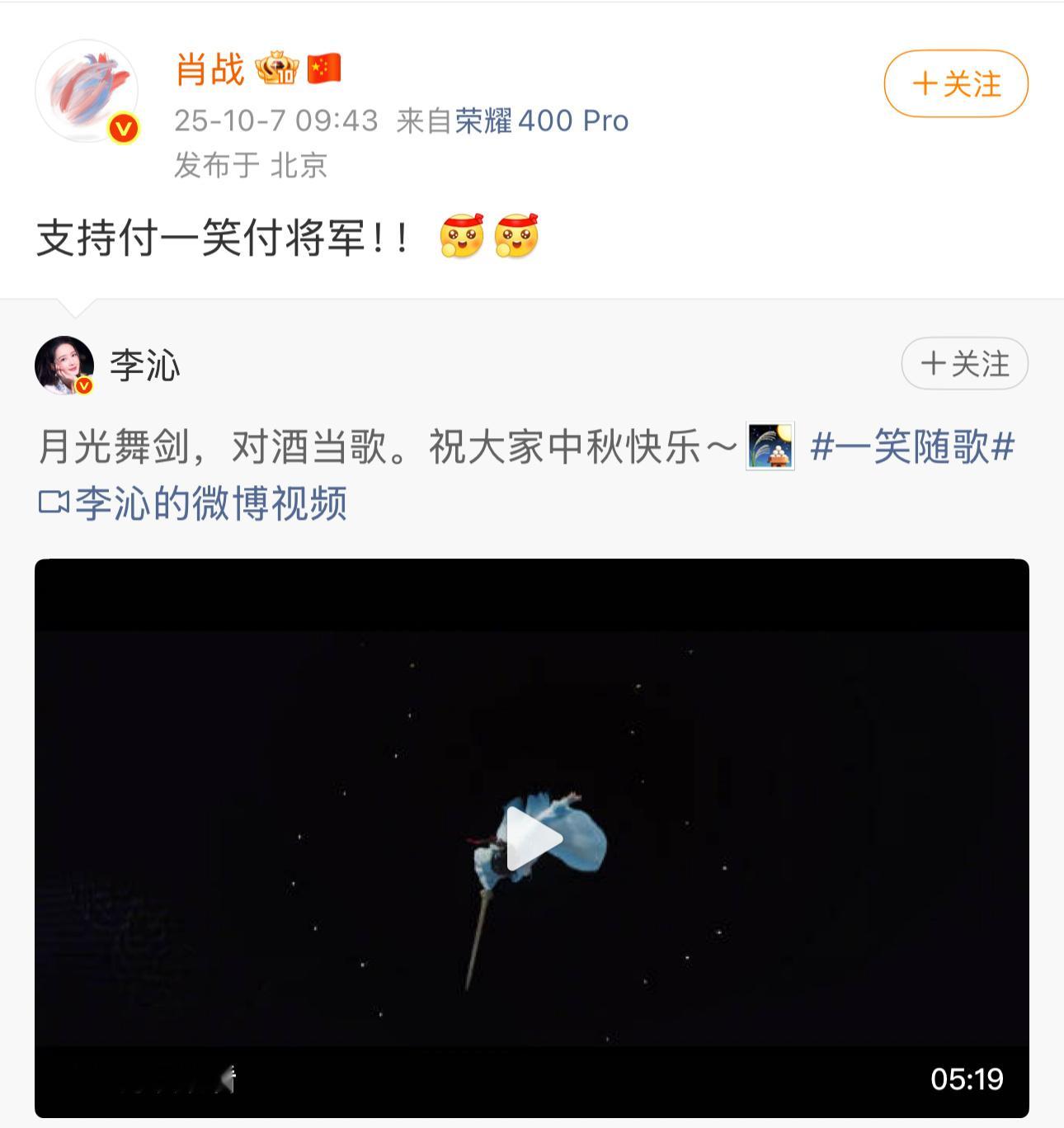 20251007,肖战为李沁新剧宣传肖战转发支持李沁新剧一笑随歌