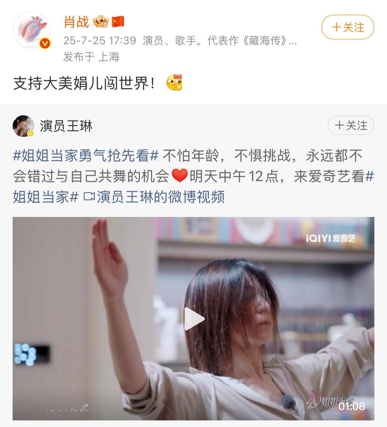 20250725,肖战转发王琳为《姐姐当家》打call!