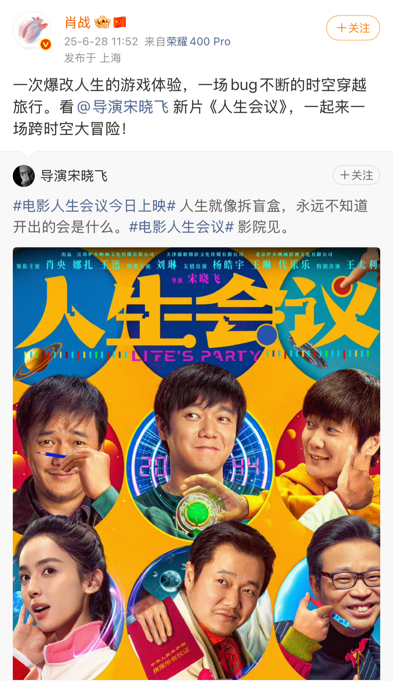 20250628,肖战转发支持宋晓飞新电影《人生会议》