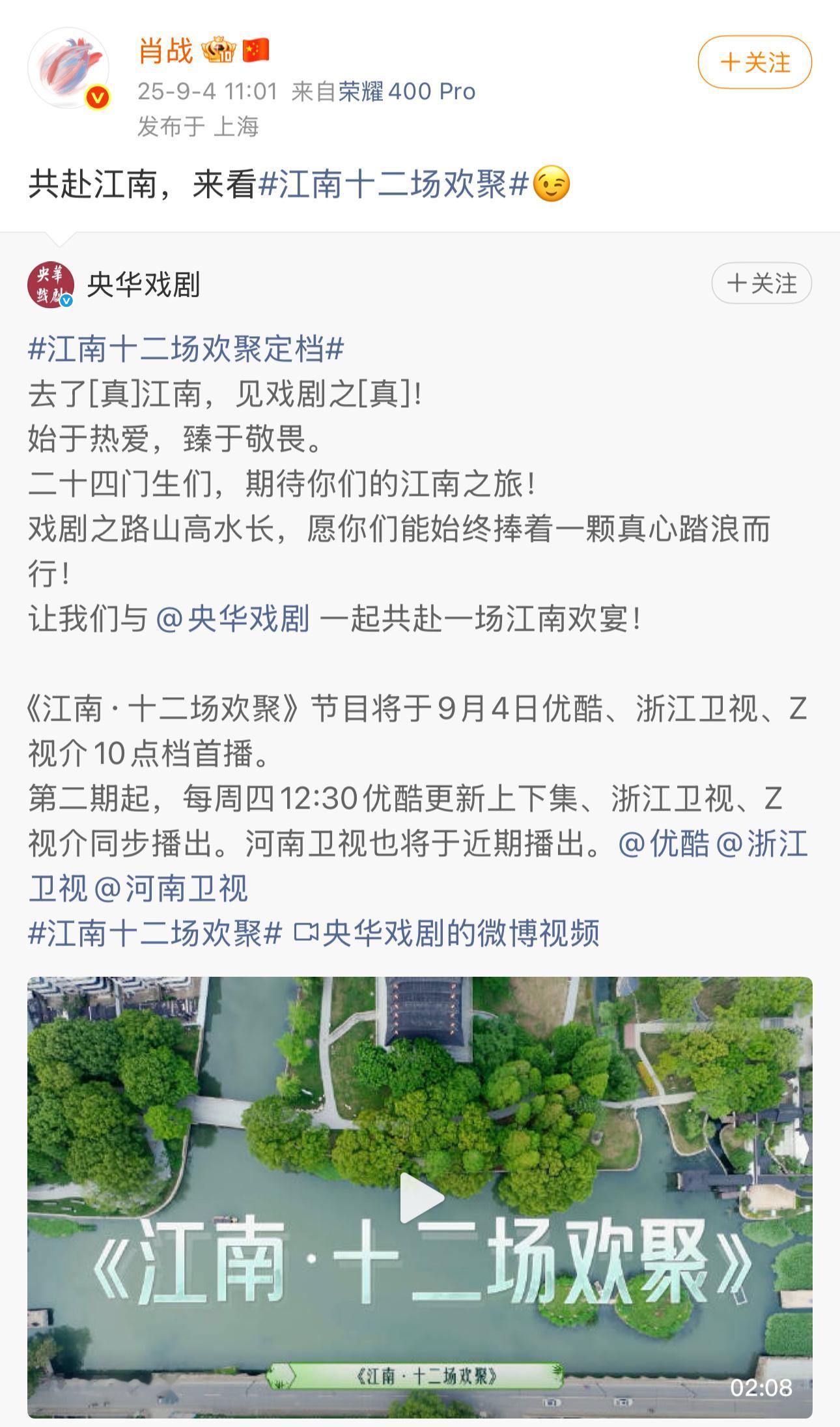 20250904,肖战期待你们的江南之旅肖战来看江南十二场欢聚,为打call!