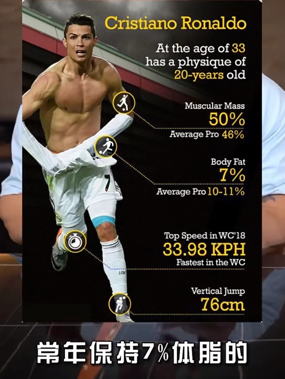 c罗常年拥有7%的极低体脂率,这个大概很多人都知道。