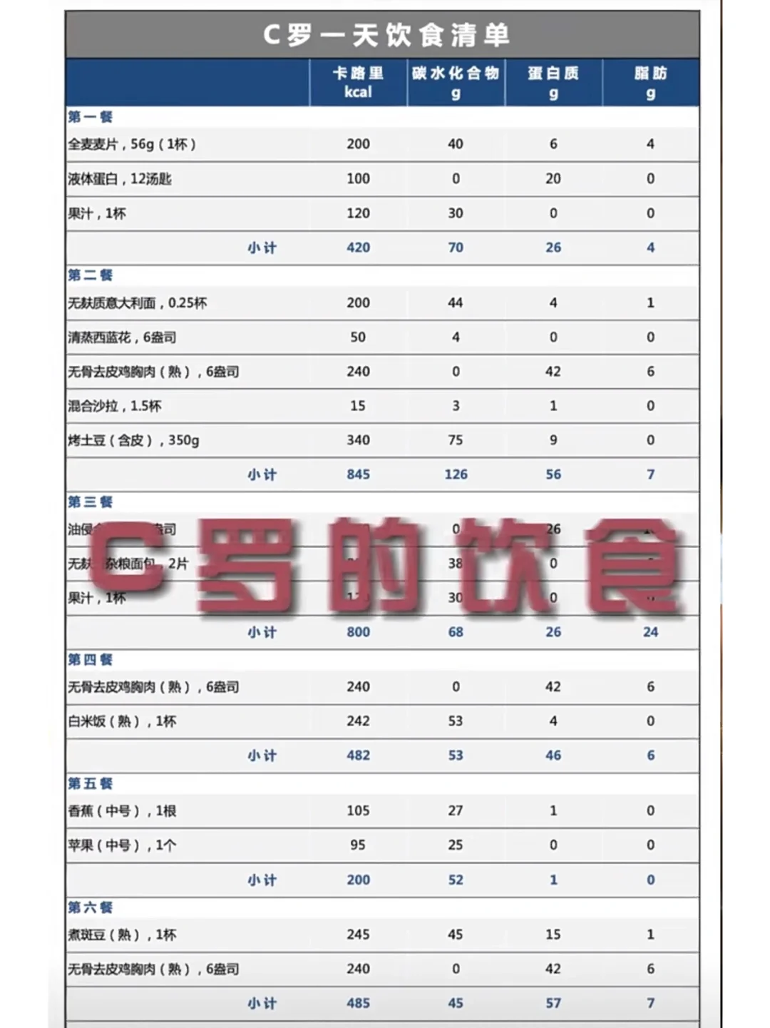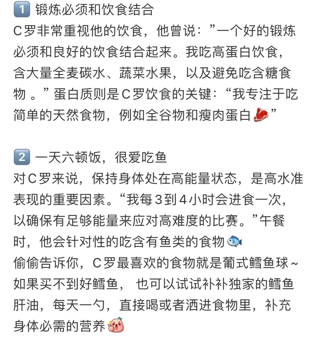 在自己的笔记里叨叨几句,c罗的饮食我贴在图二图四了。