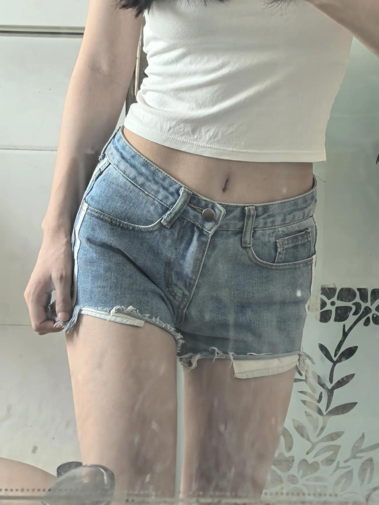 在家翻出了十年前的一条超短 穿上还是好喜欢 低腰短裤真的辣 不像现在我衣柜里全是高腰的裤子了 以前还流行这个口袋漏出来 显腿长哈哈哈 当时还好喜欢破洞款的 不过唯一不变的是我依然喜欢穿短裤