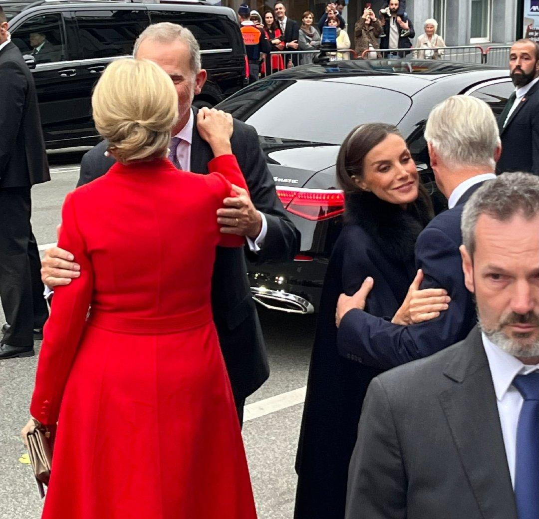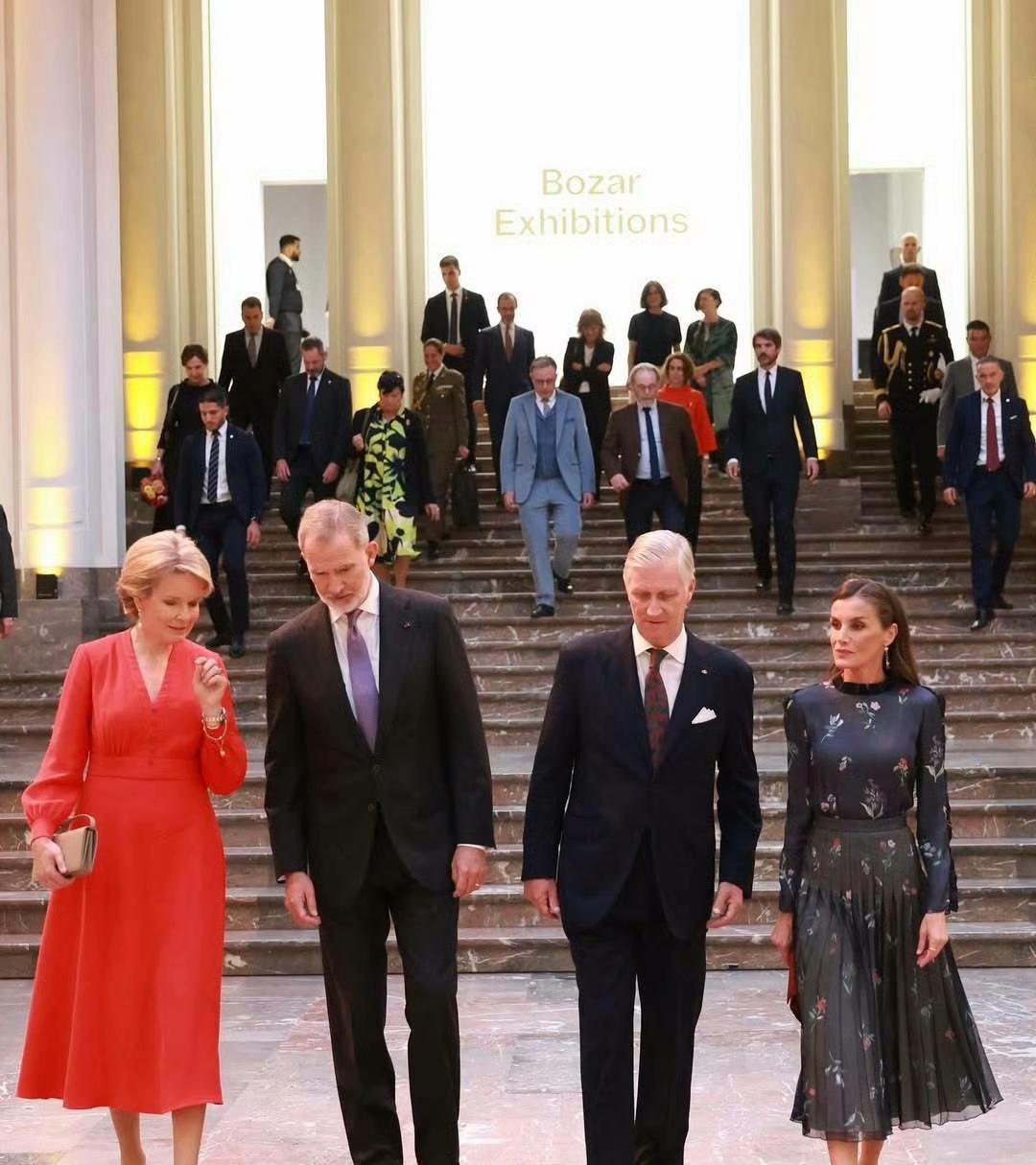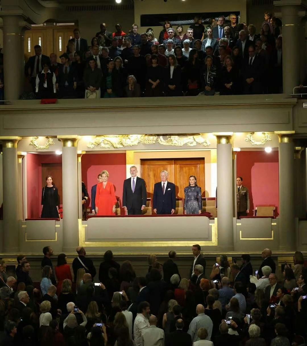 10月7日,西班牙费利佩国王和莱蒂齐亚王后、菲利普国王和玛蒂尔德王后出席欧罗巴利亚西班牙艺术节开幕式。