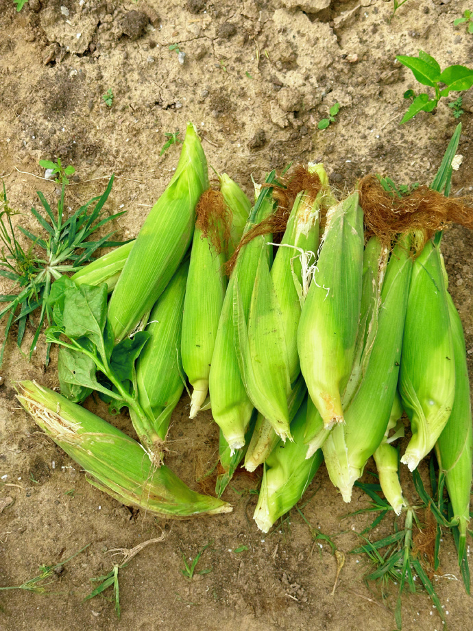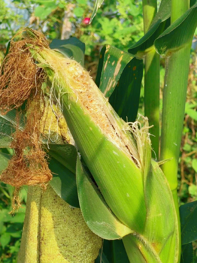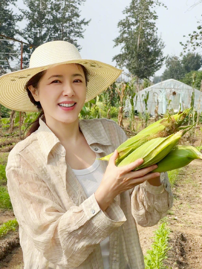 曾黎晒自己种的玉米,种了两个半月的玉米,结果一大半被虫子和鸟吃了。但曾黎的心态超好,剩下的玉米拿回来跟大家一起分享也很快乐,每次看曾黎的菜园子日常都很治愈啊!