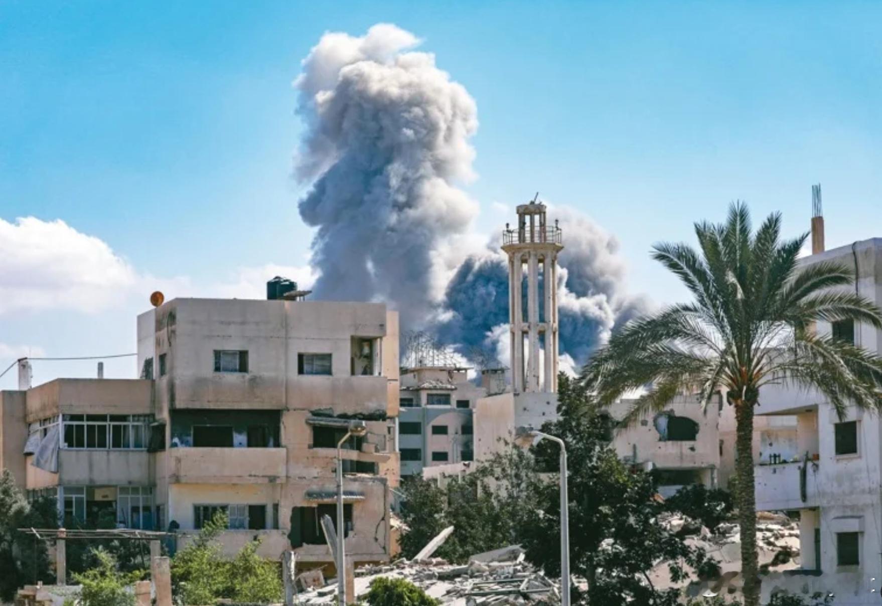 图:加沙市7日遭以色列空袭,冒出一阵浓烟。欧新社
