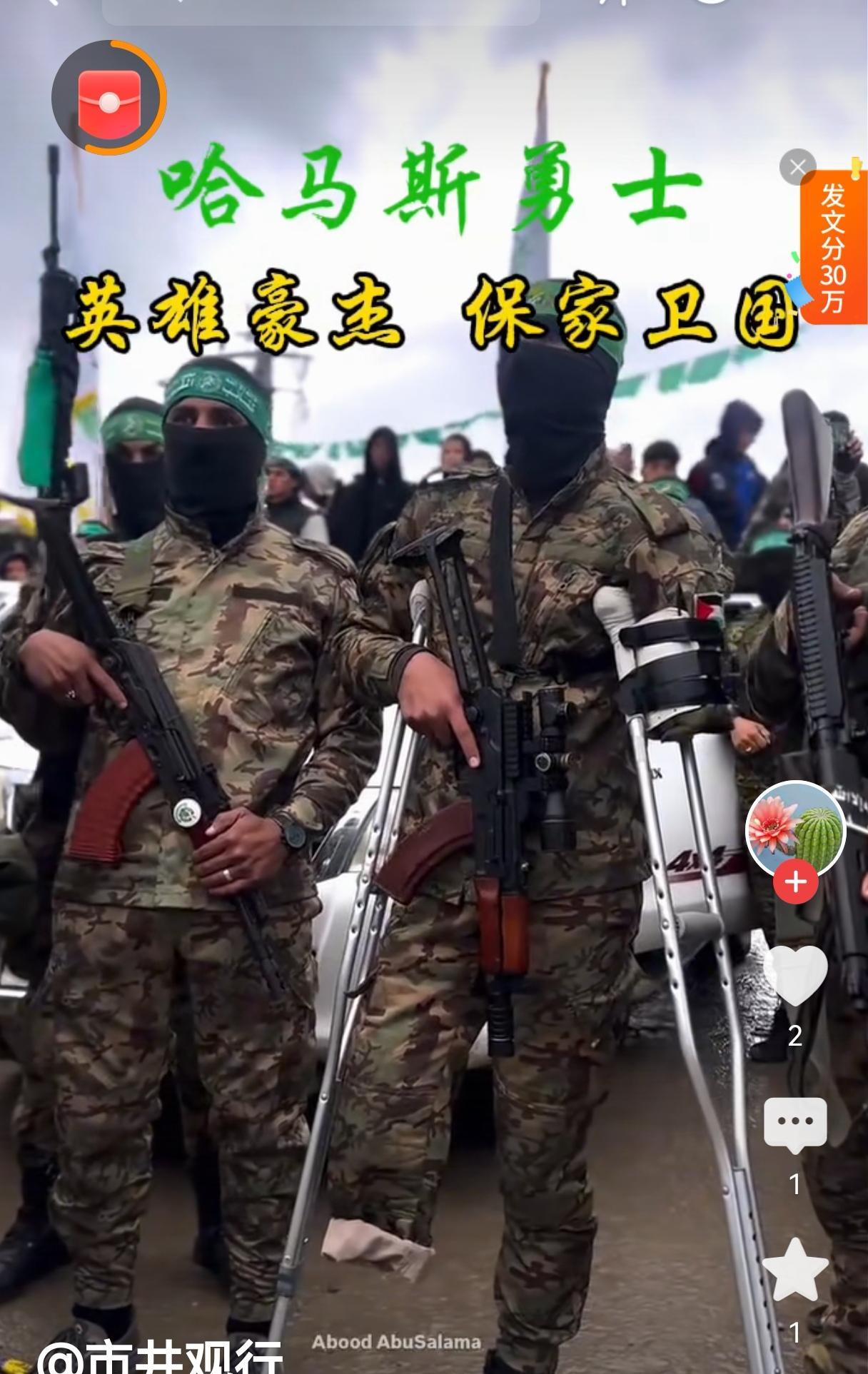 自知死地而后生!明知道实力不如对手还是要坚持战斗,只有勇气才能战胜困难,哈马斯如此!阿富汗塔利班已如此,塔利班坚持游击战20年赶走了世界霸主美军,巴勒斯坦人和哈马斯只要坚持战斗,总有一天会赶走侵略者以色列,任何时候打败敌人的不是先进的武器,是各民族人民的信仰,是前赴后继勇于与敌人战斗的精神!