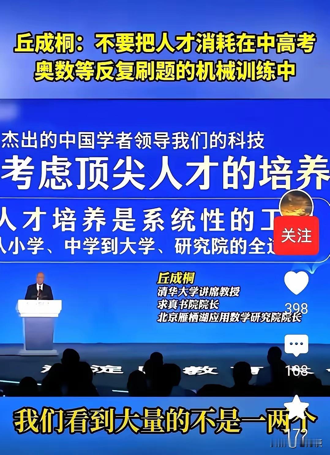 著名数学家、教育学者丘成桐指出,不要把人才消耗在中高考、奥数等反复刷题的机械训练中。丘成桐指出了我国教育的弊端,但是在目前的体制下,想要改变这种训练体质完全不可能。除非改变现在的高校录取模式,除非对现在的人才选拔方式进行变更,否则机械性的刷题将会继续延续下去,而且会越来越严重。毕竟只有使劲的刷题,你才能在选拔性的考试当中胜过别人,拔得头筹,才能获得进入更高层次学校学习。虽然很多人都知道我国目前教育模式的弊端,但是却没有人能够指出一条正确的改革之路,更没有人去创新实践一条新的教育模式,而对于小孩子们和家长们,他们只能在现有的教育模式下不断地刷新自己适应,不断地机械的训练。