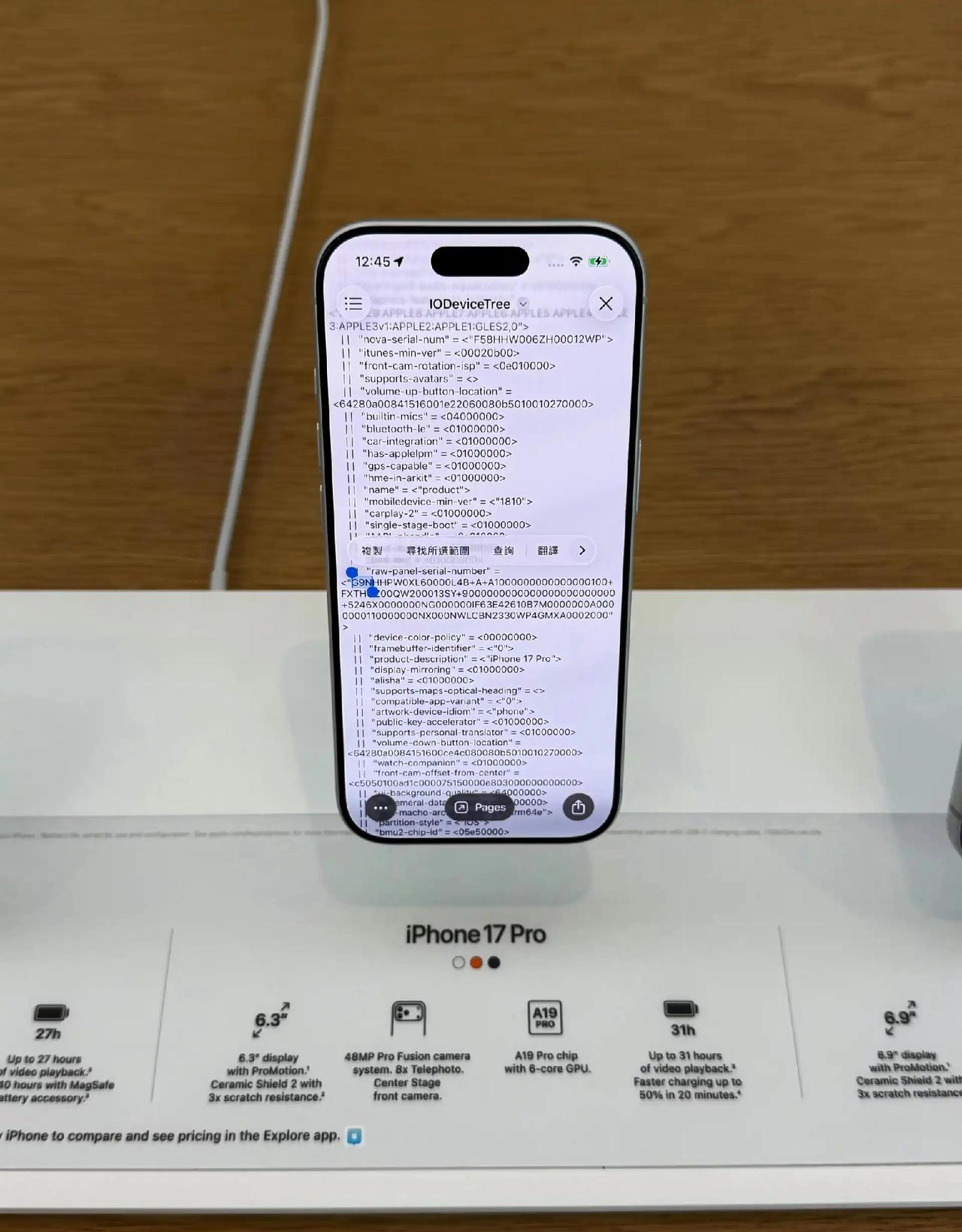今年17Pro 屏幕最好,Max是真的差。 随便一家 Apple Store 里看见质量最好的一定是Pro的G9N或G9P,基础多数是G9Q,Air和Max全是GVC阴阳屏,我之前还不信差别这么大,结果事实就是平均下来G9N>G9P>LG,大家买到的也是如此,首批Pro几乎全是G9N(滑稽)看来之前传的花旗集团供应链是真的 三星G9N和G9P区别:室内手动亮度P比N亮度高一点,激发亮度相同,P侧看偏色比N严重,N很轻微,N只要不是阴阳屏就是最顶级的我的 16Pro G9P 对比 17Pro G9N 是这个结论,去苹果官方演示机的结果也一模一样,图中都是演示机,至于P是不是用了M14基材目前没见到任何依据,单论显示效果 查询方法:同时按住电源和音量加减,弹出关机界面时会震动之后再震一下三分钟后分析数据里搜索sys就会出现新生成的系统报告,导入文件之后打开ioreg里的IODeviceTree搜索raw-panel,下面一行就是屏幕代号。