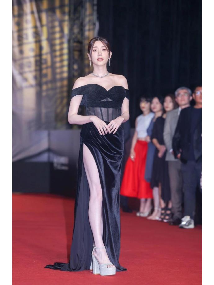 郭雪芙深V抹胸透视高开衩长裙,性感撩人