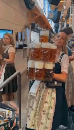 这姑娘端的这十几杯啤酒,估计一些男的端起来都吃力。