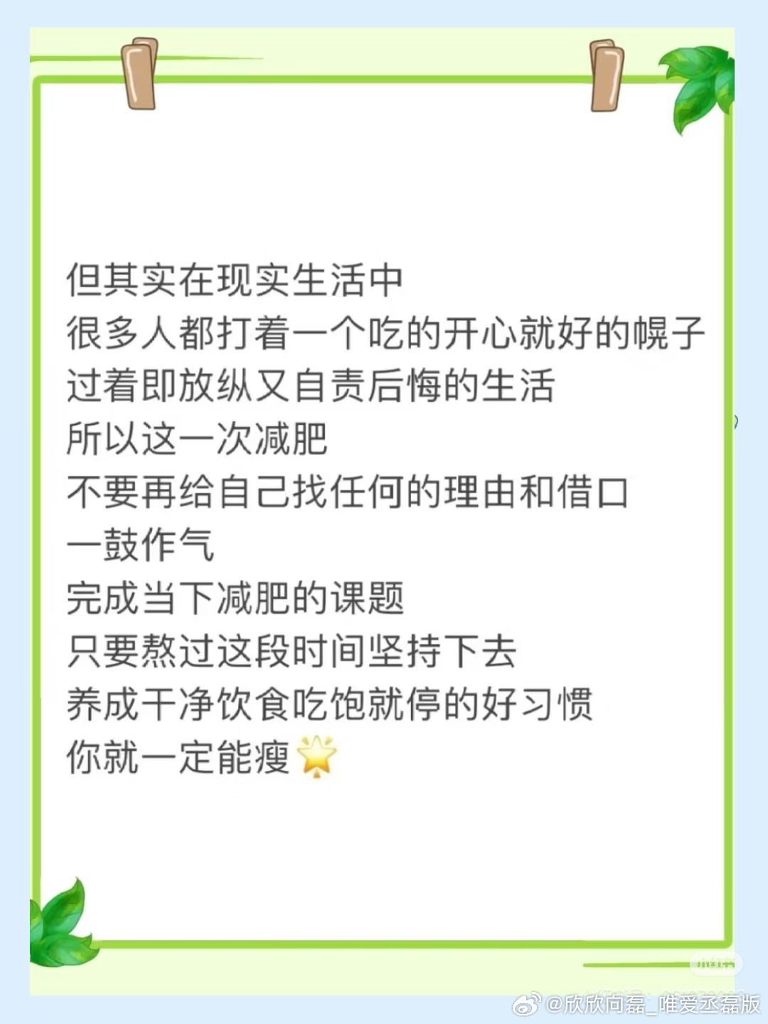 所以,这次减肥,不要给自己找任何理由和借口。一鼓作气,完成减肥课题。只要熬过这段时间,坚持下来,养成健康饮食的好习惯,你一定能瘦。