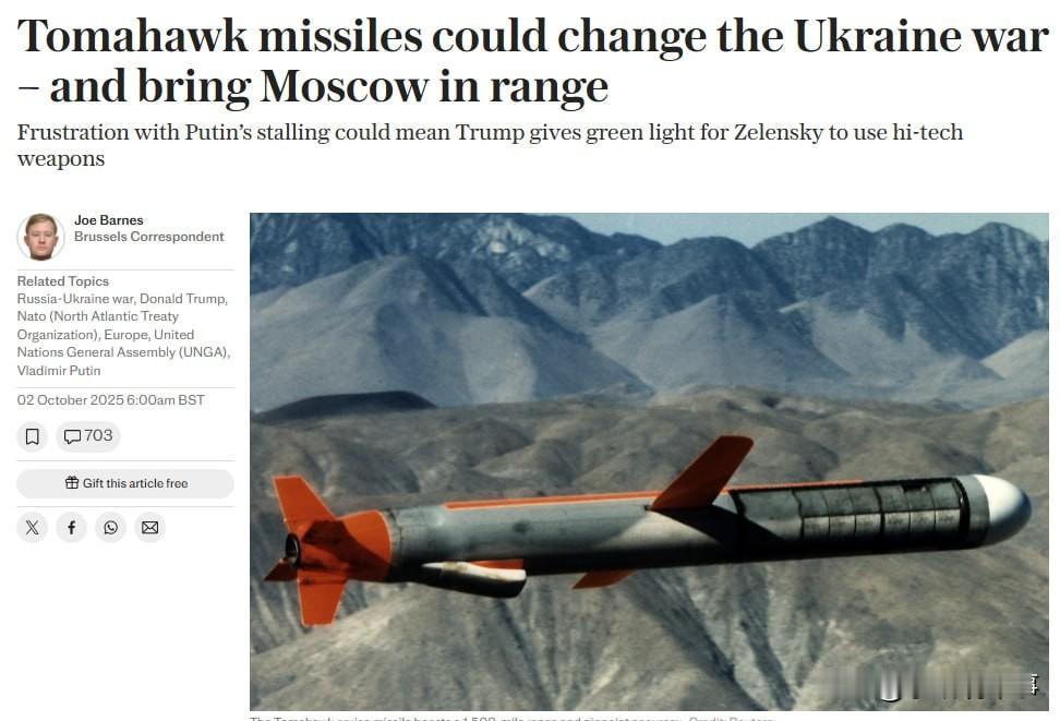 🇺🇸🇺🇦🇷🇺据英国《每日电讯报》报道,美国可能会在未获使用许可的情况下向乌克兰提供“战斧”导弹,目的是“在谈判问题上影响俄罗斯”,但此举可能需要数个月的时间。 “战斧”导弹是一种价格昂贵的导弹,但真正问题不在于价格,而在于生产。美国每年生产50到70枚此类导弹,且已在中东地区消耗了数百枚。 西方分析人士称,要提供足够数量的“战斧”导弹以产生显著影响将非常困难。 此外,乌克兰发射此类导弹需要使用美国提供的情报数据。这实际上赋予了美国对任何打击的否决权。 战斧导弹价格 美试射导弹 战斧弹