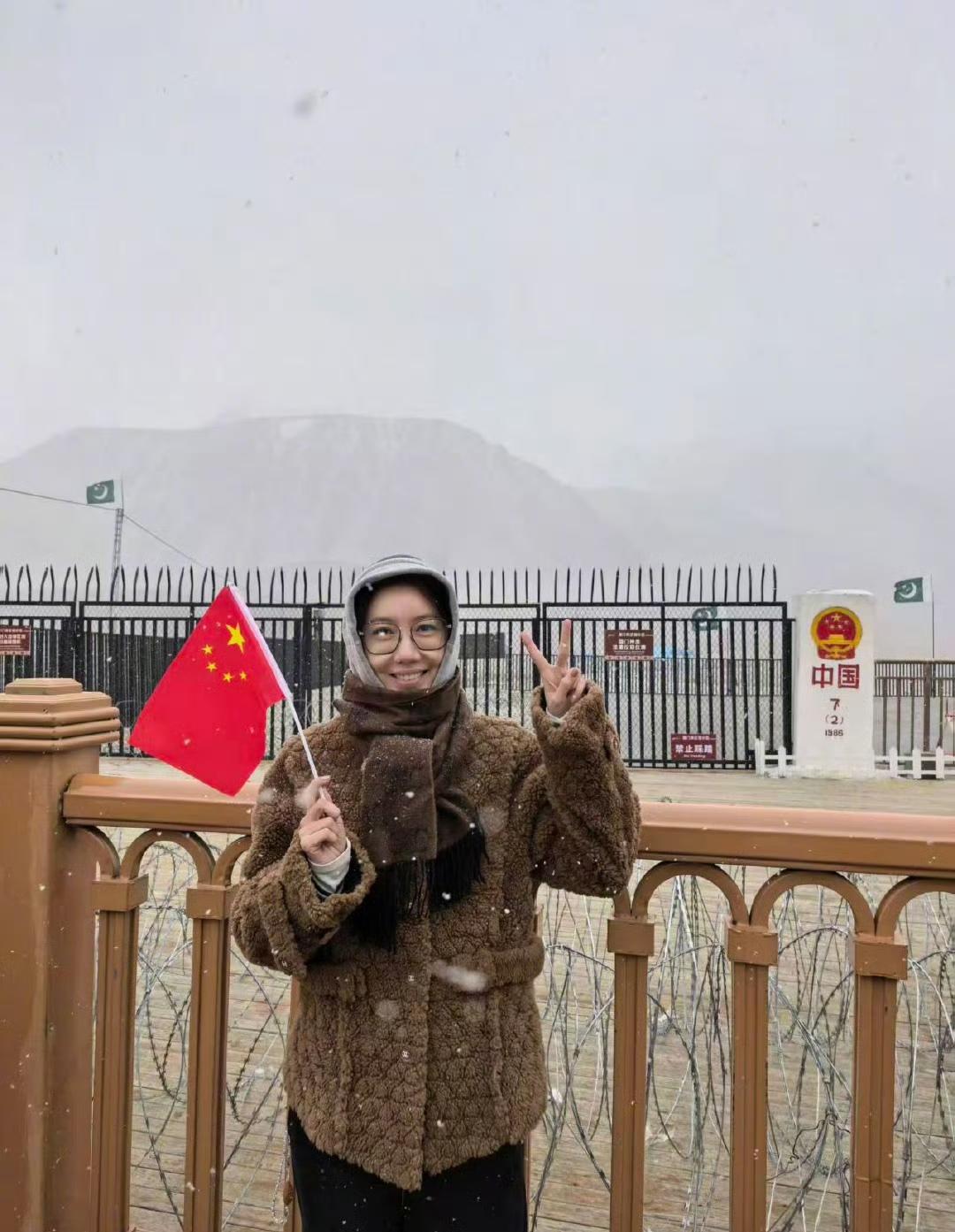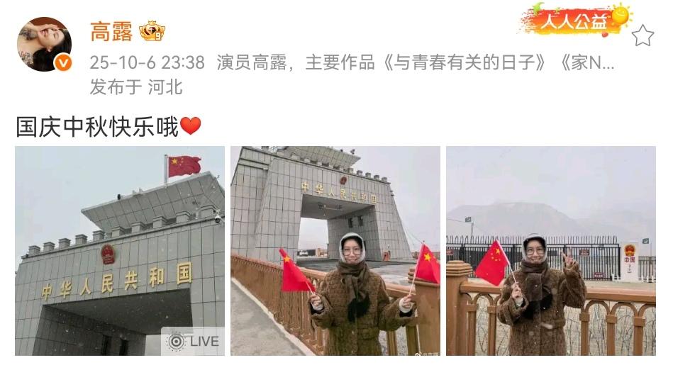 我的妈呀,高露在国庆假期晒出的图,图中的她穿着厚外套,那是什么地方?有那么冷了吗