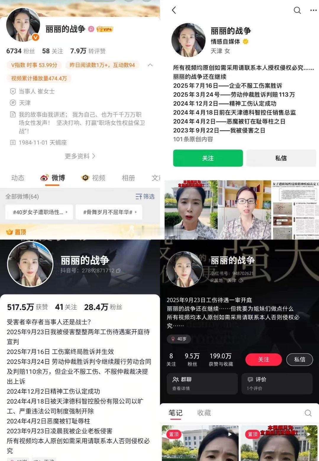 催丽丽已经入住各大平台,目前有抖音,小红书,微博,视频号,全平台布局。