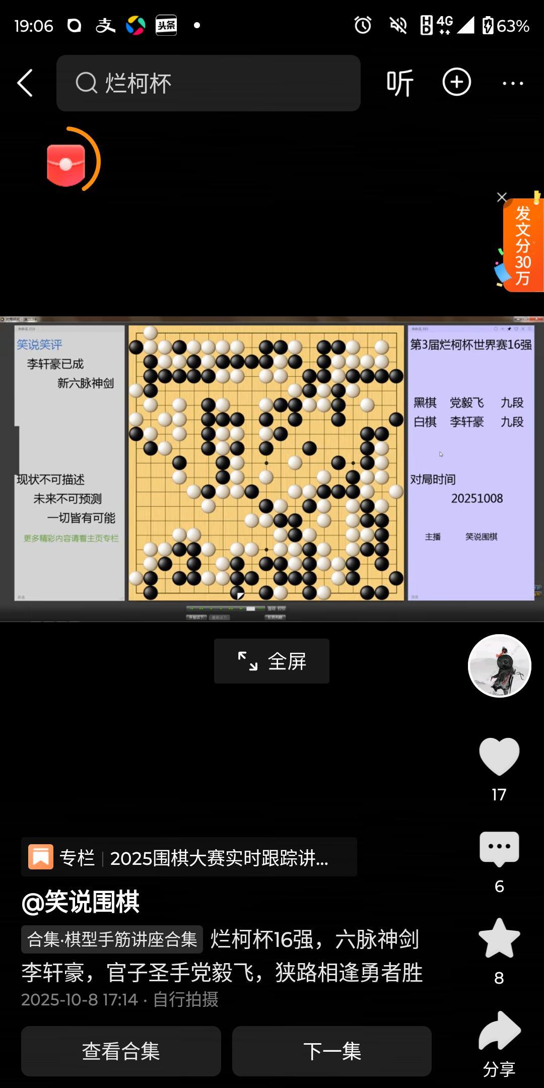 李轩豪状态下滑。 烂柯杯16强赛今日打响。 李轩豪对阵党毅飞,两人等级分差不多,都是一个世界冠军在手。但是今天的对局,开局李轩豪还是有板有眼,进入中盘突然的就掉链子,很快就崩溃了,党毅飞中盘获胜。 但是党毅飞接下来即使能碰上申真谞估计也够呛。从申真谞今天轻取屠晓宇的状态来看,他仍然是处于无敌状态,哪怕目前韩国棋手只剩下小申一人,基本上也是他夺冠,这个好像无解。