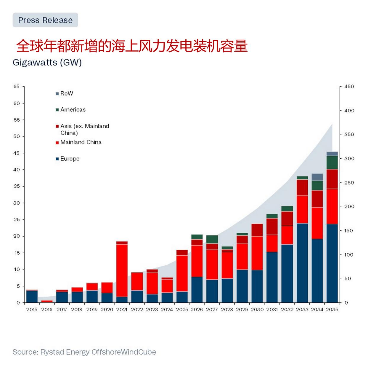 由于美国能源政策的转变,中国在海上风电领域的优势地位进一步加强 ——美国通过侧重于国内石油和天然气来试图与中国的供应链脱钩的策略,给其海上风电产业带来了经济上的挑战,导致投资减少和项目停滞。 ——尽管美国遭遇了挫折,但预计到 2025 年全球海上风力发电装机容量将达到 16吉瓦。其中,中国将开发其中的三分之二的项目,并预计到 2030 年将占据全球累计发电装机容量的 45%。 ——美国能源政策的转变使得欧洲的风力发电开发商对在美国的投资望而却步,而西方的原始设备制造商则纷纷回归到中国有利的商业环境中,这使得美国在长期内难以与之竞争。 随着美国试图通过加大对国内石油和天然气资源的依赖来摆脱对中国的供应链依赖,诸如海上风电等产业面临着一系列经济难题,包括停工令、税收减免政策的取消以及不断上涨的通货膨胀成本。尽管美国的形势不利,但Rystad Energy的研究显示,到 2025 年底,全球新的海上风电装机容量将达到 16吉瓦(GW),这是因为已经开展的项目所致,其中三分之二的项目在中国进行。Rystad Energy预测,到 2030 年,中国的海上风电项目将占据全球累计装机容量的 45%,这使得美国市场在长期竞争中难以与之抗衡,无论政策是否出现逆转。 Rystad Energy公司的高级副总裁兼海上风能研究部门负责人亚历山大·弗洛特雷认为,“现在可以明确的是,美国能源政策的转变不仅阻碍了此前已获批准的海上风力发电项目的推进,还促使欧洲的风力发电开发商不再将投资放在美国。尽管中美供应链可能已经脱钩,但中国作为全球可再生能源领导者的地位却因此得到了加强。” 一些明显的趋势已经显现出来。2025 年迄今为止,美国的可再生能源投资已同比下降 36%;而欧洲的投资则在增加,因为企业将资金从美国转移了出来。两家公司都收到了停工令,分别是Orsted的罗得岛海上风力发电项目和埃克森美孚的纽约项目。后者达成了协议,解除了政府的禁令。一名联邦法官撤销了Orsted “革命之风”项目的停工令,而关于是否继续进行法律诉讼的问题仍有待解答。为了继续吸引投资者,Orsted以及类似的公司必须评估海上风力发电项目的所有选项以及它们在美国的整体布局。 另一方面,总部位于中国的中海油表示,其正在推进海上风电项目的扩张计划,其中一项关键项目——位于海南的 1.5GW CZ7 项目计划在 2030 年前投入运营。该项目已获得批准,并将成为中海油的首个大型公用事业项目。对于那些在美业务较少的欧洲能源公司而言,它们对中国的依赖程度只会进一步加深。 建立一个以可再生能源为驱动的替代供应链来与中国竞争的可能性很低,因为西方的原始设备制造商(OEM)在 2020 年撤离后,如今又纷纷回到中国这片有利的商业环境中。而面临的挑战十分艰巨:例如,对欧洲广泛采用的 IEC 类型认证的涡轮机平台进行分析后发现,为西方 OEM 生产关键部件的约 25%的制造工厂都在中国。 Rystad Energy公司供应链研究部门的副总裁安德烈亚·斯卡索拉表示,“欧洲的风能产业已经有所察觉,政策制定者们也正在积极行动起来,以帮助减少对中国进口产品的依赖,并加强国内的风能产业链建设。官员们希望这些措施能够促进制造业的扩张,同时又能控制成本。“