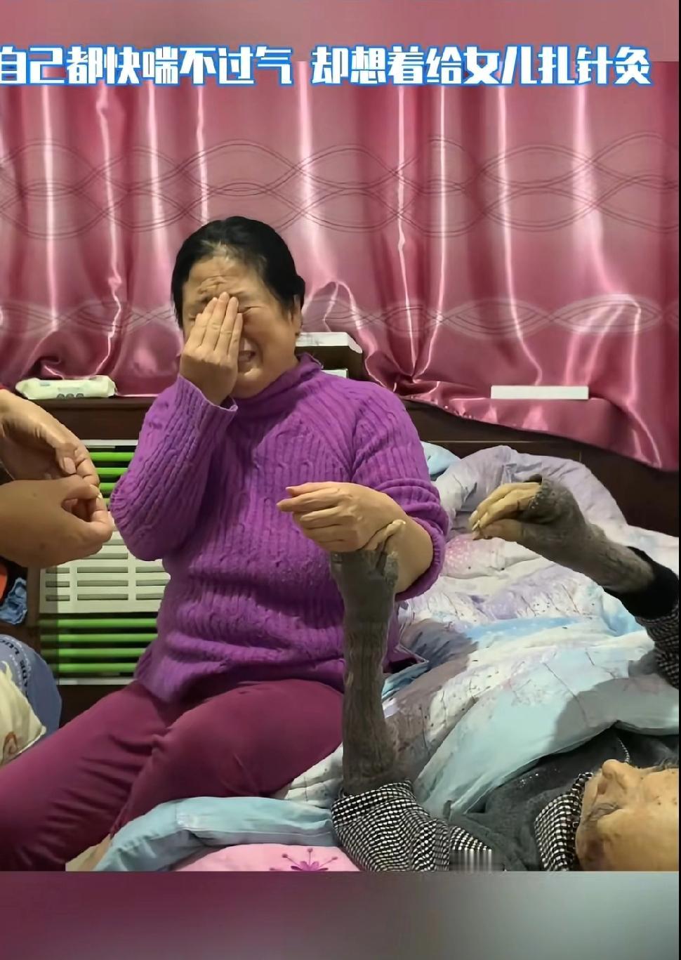 爷爷临终前四小时 依然牵挂自己的孩子 自己都喘不过气了,还坚持给感冒的女儿做针灸