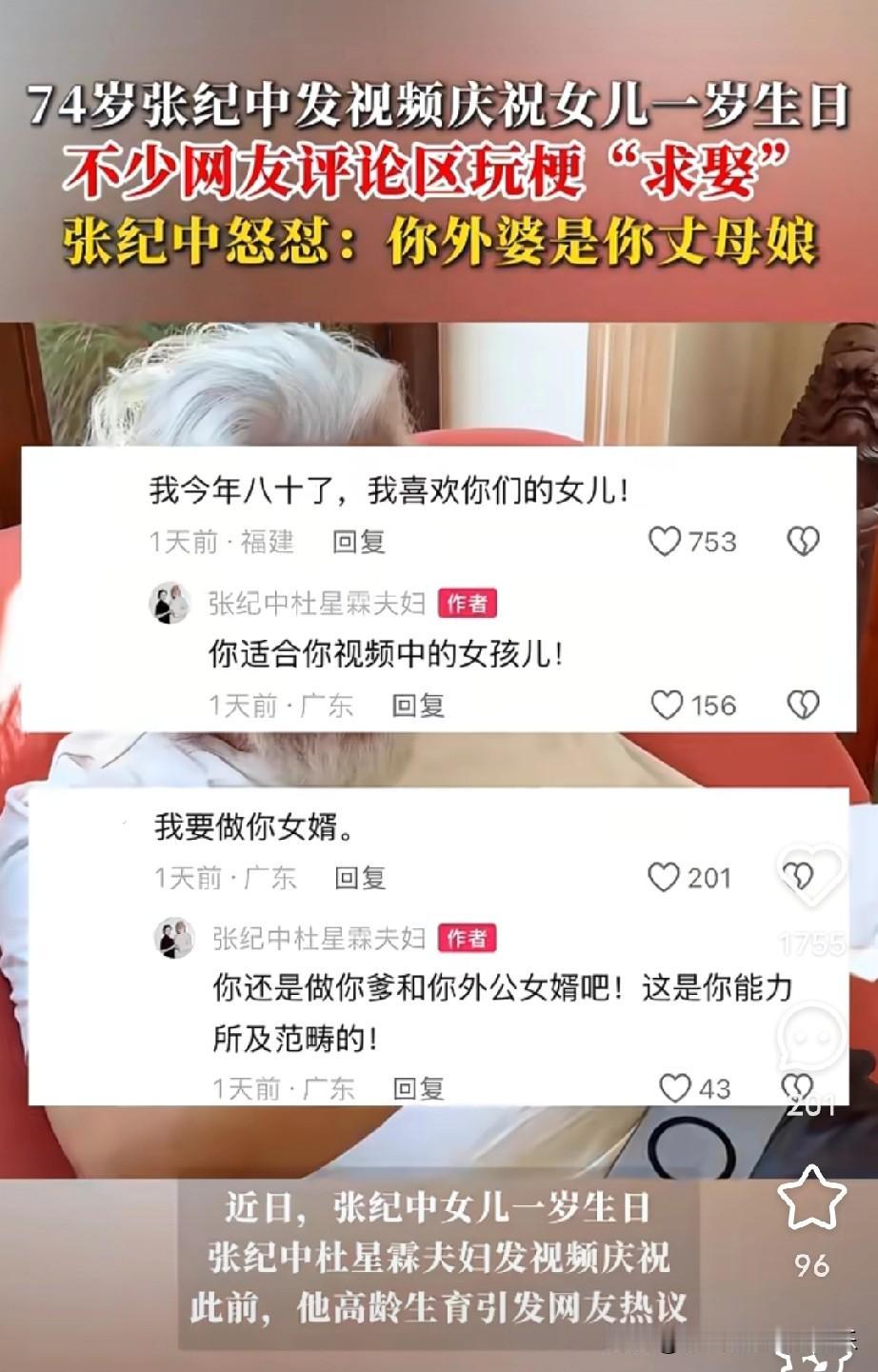 74岁张纪中的小女儿太可怜了! 才出生一岁就被网友指指点点的, 就因为她爸张纪中是知名导演,她妈妈是公众人物,所以还是个小宝宝的她就要遭受这些指指点点的! 宝宝是白纸一样的,父母把她带入了纷扰的世界。这个小孩出生在这个家,就注定了这一生免不了被人指指点点了! 也不怪张纪中这两口子会那么生气回怼网友了,正常人看到都会生气! 这小宝宝也怪可怜的!大家觉得呢?