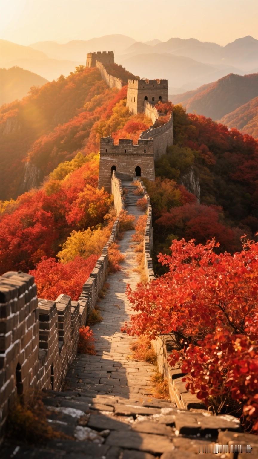 当都市的油画笔触邂逅长城的秋意斑斓,一边是现代都市在夕阳下的艺术化剪影,钢筋水泥间流淌着色彩的浪漫;一边是古老长城在红叶中的历史长卷,砖石瓦砾间沉淀着岁月的厚重。一今一古,一洋一土,却同样在光影与色彩里,绽放出属于各自的极致韵味,勾勒出文明与时光的双重交响。
