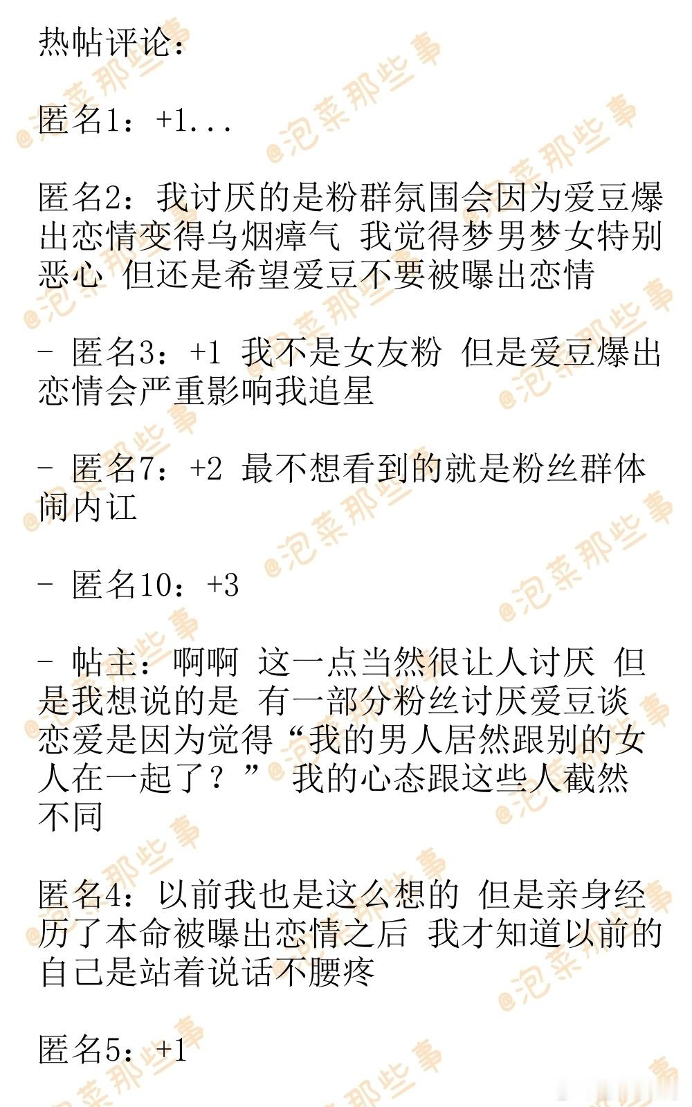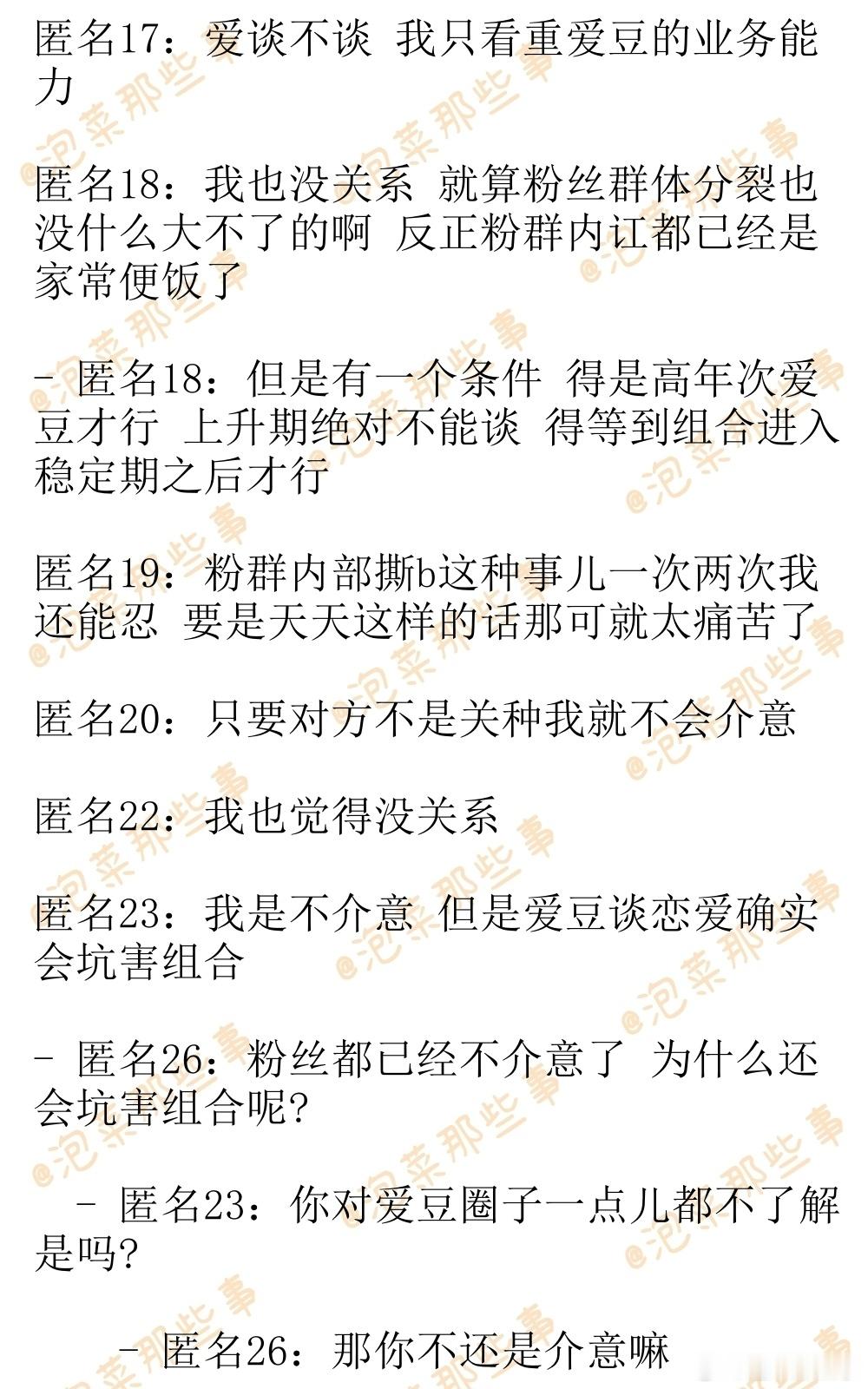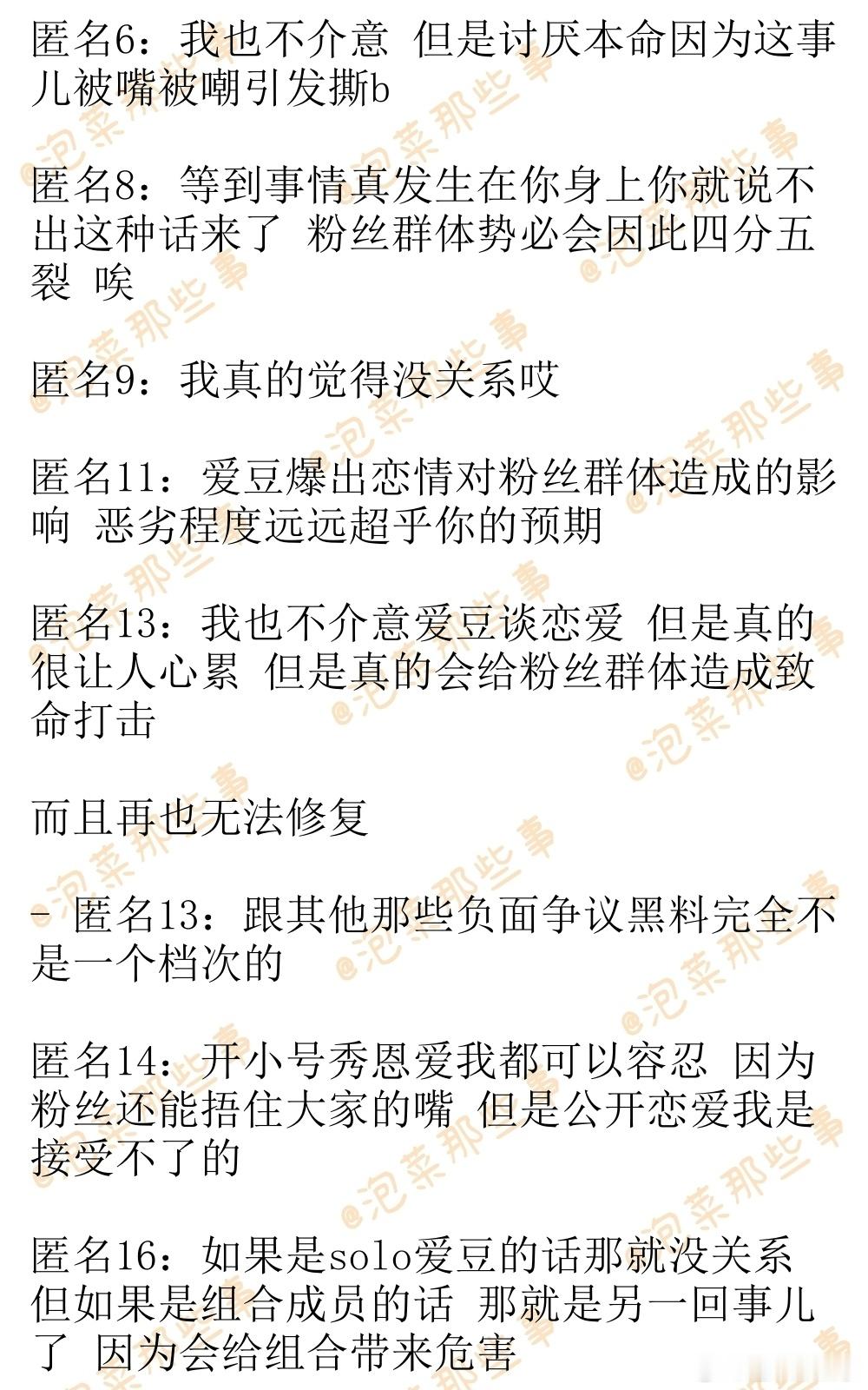 韩网原帖帖主称:虽然我对本命的喜欢也掺杂有一定程度的异性感情 但是实话实说 我又不可能跟本命谈恋爱 而且也不是单单只喜欢本命那张脸 也喜欢ta的唱跳等等业务能力 只要ta别秀恩爱 谈恋爱也好 结婚也好 我都不会太介意哎 当然了 无事发生才是最好的 但是万一被爆出来的话 我也只会觉得很可惜..? 但是跟一起追爱豆的朋友们聊这个话题的时候 居然没有一个人同意我的意见哎