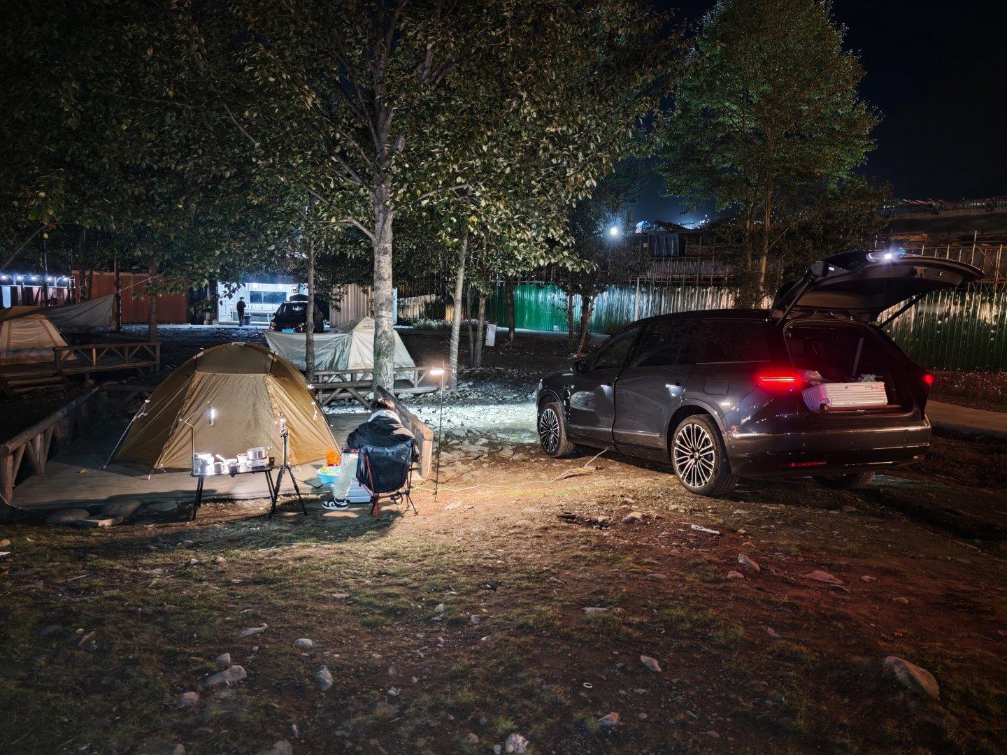 今天选的这个付费营地风景其实一般,但是第一天来保险一点,这里洗手间热水啥都有,还有木地台,保温效果更好,一晚上才60,性价比超级高。