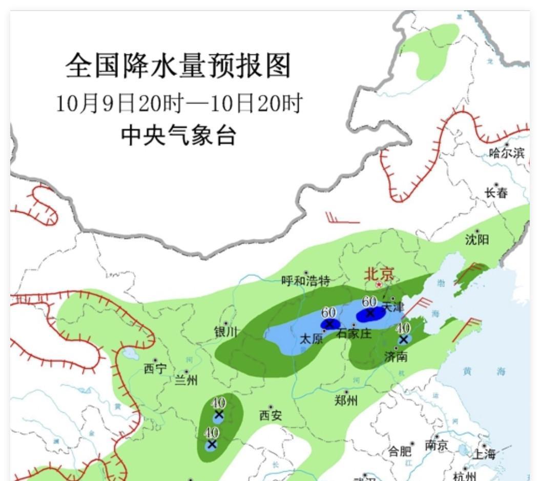 万万没想到!国庆节后,10月9日到11日,连续三天,中国的降雨,主要集中在北方,