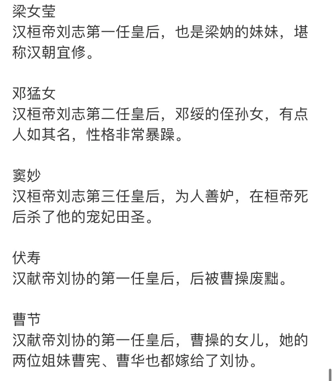 汉朝皇后相较于其他朝代的皇后,无论是手里的实权还是知名度整体上都要高出一截,所以关于她们名字的记载也相对来说齐全很多。