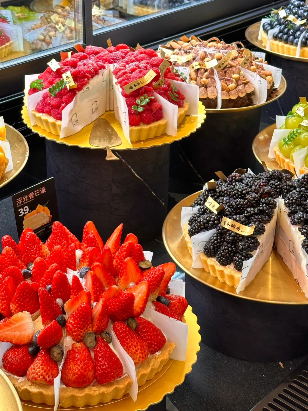 水果派!!用料也太太太扎实了!新鲜的水果大块爆汁:树莓、无花果、菠萝蜜、青提、凤梨、芒果…颜值爆棚而且用的都是动物奶油!入口即化的感觉!搭配上底下的酥皮真的不要太好吃了😭30s怒炫一整块!!!