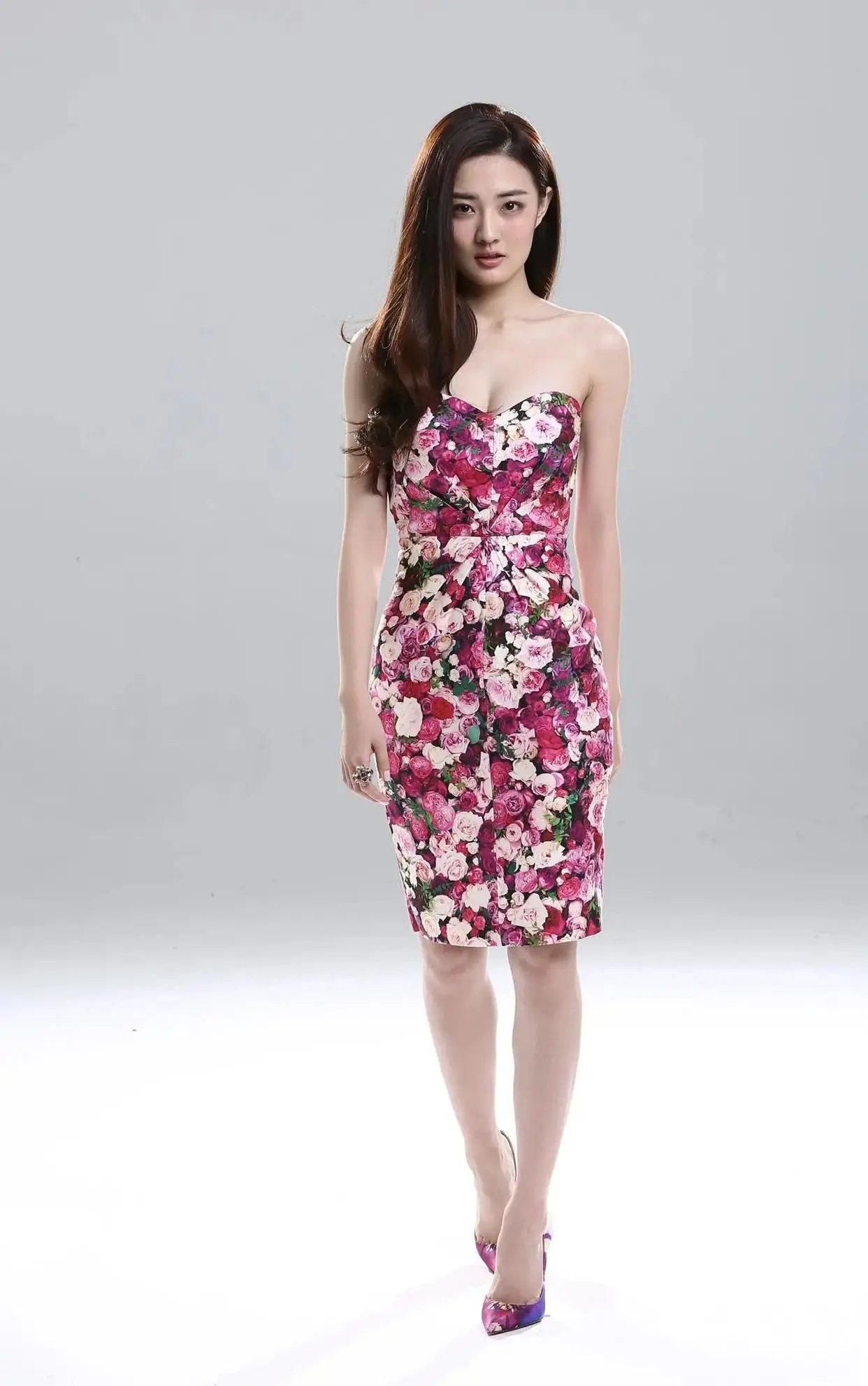 徐璐,高跟碎花抹胸裙定妆美照,徐璐高跟碎花抹胸裙定妆照,如花中仙子,清新脱俗,裙
