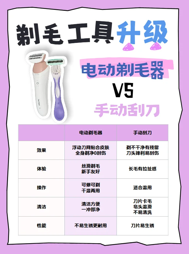 跟手动刮毛刀比,这个电动剃毛器真的好用多了