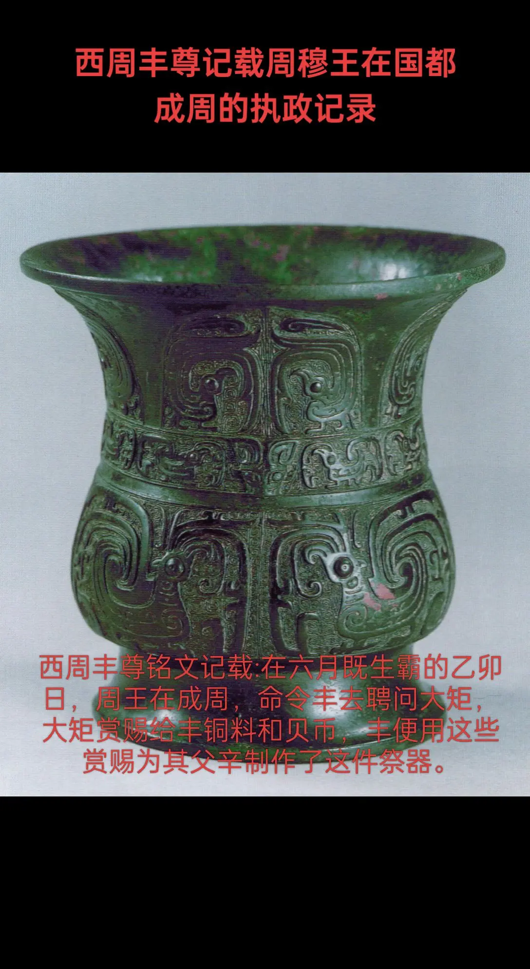 丰尊铭文:西周周穆王在国都成周的执政记录。我评论了的作品:丰尊的器主是丰。