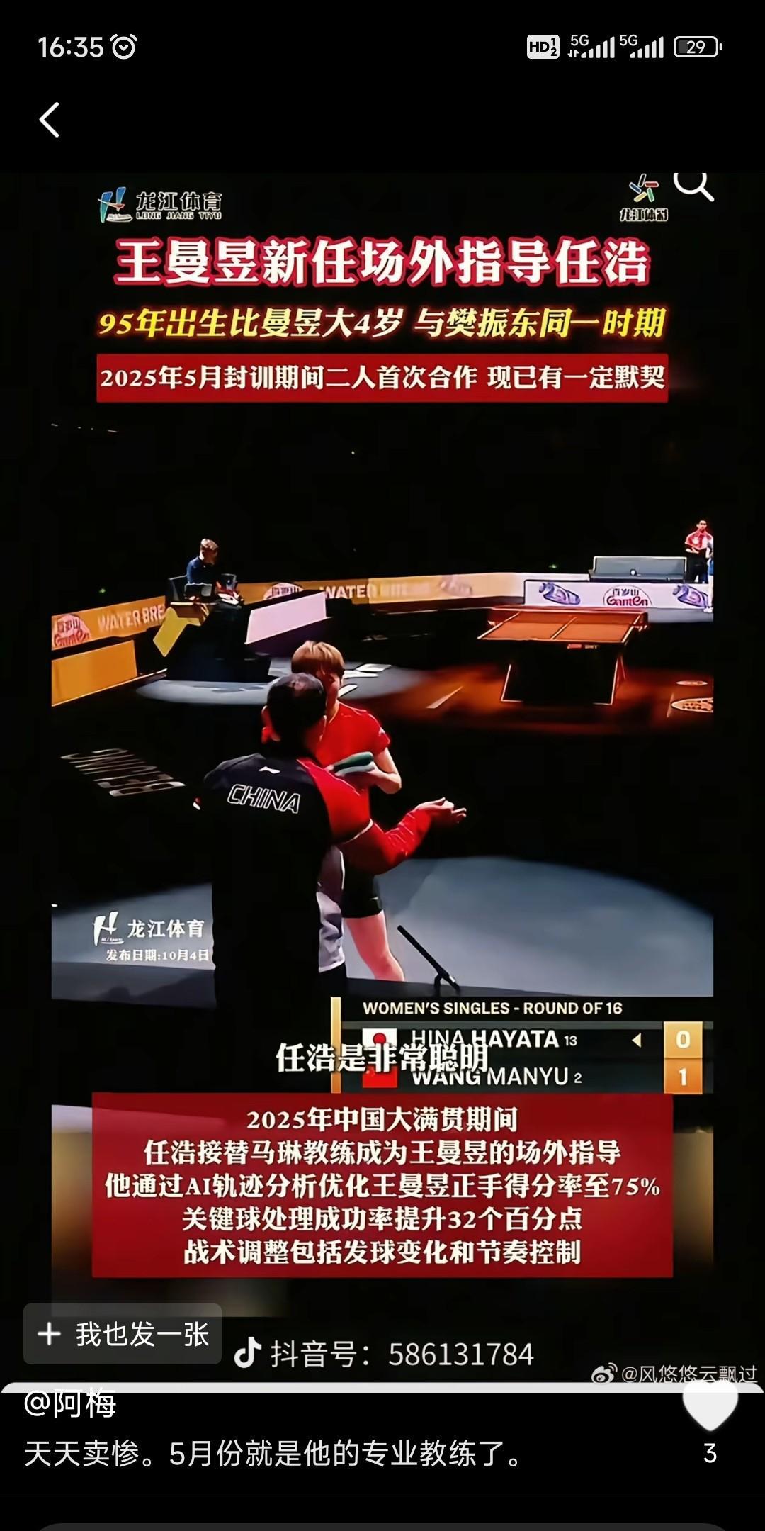 24分钟赢早田?别骗自己了,人家右肩都快散架了,发个球都在抖。王曼昱呢?腰