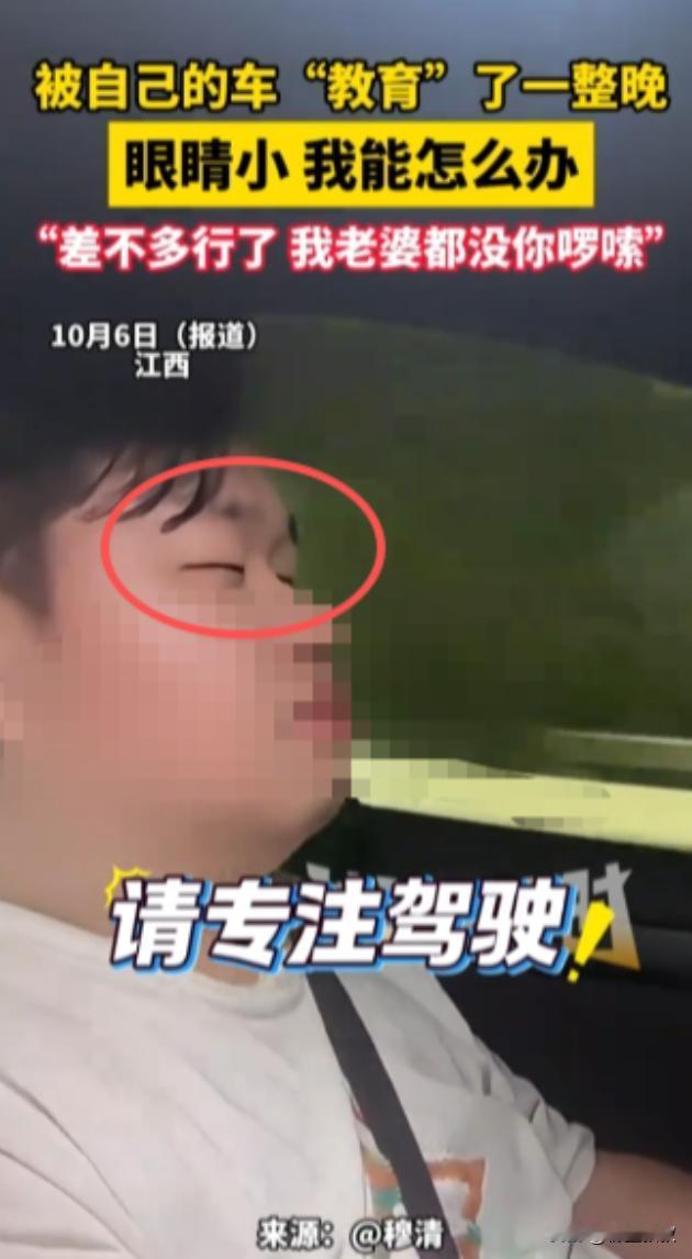 “笑不活了!”10月6日,江西,一男子因为眼睛太小,被自己的汽车“教育”了一整晚不要疲劳驾驶,男子一气之下冲汽车大喊“我老婆都没你啰嗦”,网友:赶紧去割个双眼皮吧,还能显得眼睛大点! 事儿是这么回事儿,这位大哥那天一整晚都在跑长途,副驾上坐着他老婆,本来俩人还偶尔聊两句,路上也没什么状况,可开着开着车里的智能监控系统突然开始 “说话” 了,一句 “不要疲劳驾驶” 飘出来,大哥还没当回事儿,觉得可能是系统误触,毕竟自己精神头足着呢,眼睛睁得溜圆,一点困意都没有。 可架不住这警报响得没完没了,跟复读机似的,隔几分钟就提醒一次 “请专注驾驶”“不要疲劳驾驶”,一开始大哥还耐着性子忽略,后来听得多了脑子都嗡嗡的,烦得不行。 他一会儿摸了摸脸,一会儿调整了下坐姿,心想 “我这哪儿疲劳了?难道是我开车姿势不对?” 可不管他怎么调整,那警报声还是准时准点地冒出来。 最后大哥实在忍不住了,朝着方向盘那边就来了一句:“你有完没完啊!我眼睛就那么点儿大,天生的,又不是故意眯着眼打瞌睡,你老响什么响?我老婆都没你这么啰嗦!” 副驾的老婆在旁边都快笑岔气了,她盯着老公的脸看了半天,终于看明白了问题在哪儿,大哥天生眼睛就小,平时睁着眼看着也像轻轻眯着似的,这智能系统八成是把他的小眼睛当成 “闭眼打瞌睡” 或者 “疲劳眯眼” 了,所以才一个劲儿地报警。 这下大哥更气了他又对着系统喊:“我总不能为了让你不报警,全程把眼睛瞪得跟铜铃似的开车吧?再说了我要是强行瞪大眼睛,反而会散光看路都模糊,那不是更危险吗?” 这话倒是没说错,本来智能系统是为了安全设计的,结果因为没识别出 “小眼睛” 这个情况,反而逼着驾驶员做可能更危险的事想想也挺讽刺的。 老婆一边笑一边劝他:“别跟机器置气了,它哪懂什么天生眼睛大小啊,估计就认‘眼睛睁得够不够大’这一个标准” 大哥没辙只能硬着头皮继续开,一路上就听着系统时不时的警报声,别提多闹心了,本来好好的长途,愣是开得跟 “接受批评教育” 似的。 后来他老婆把这事儿的经过拍了段小视频发网上,没一会儿就火了,网友们评论区里炸开了锅,全是搞笑的留言:“哈哈哈哈这系统也太‘一根筋’了,不知道世界上还有‘小眼睛星人’吗?”“大哥别气,要不咱去割个双眼皮?说不定眼睛显大了,系统就不报警了!”“我要是这大哥,估计得跟车聊一整晚最后还得输,毕竟机器不会顶嘴但架不住它能一直说啊!” 其实说真的这智能系统的出发点是好的,就是想盯着驾驶员,防止疲劳驾驶出危险,这次误报也能看出来,它的感应还挺灵敏,就是有点 “太死板” 了。 它只认 “眼睛睁开的大小” 这一个标准,完全没考虑到有人天生眼睛就小,不是疲劳才眯眼,这大概就是大家说的 “算法的偏见” 吧 ,没琢磨透人的生理多样性,就容易闹这种乌龙。 (信息来源:《被自己的车“教育”了一整晚,眼睛小 我能怎么办,“差不多行了 我老婆都没你啰嗦”》法治进行时)