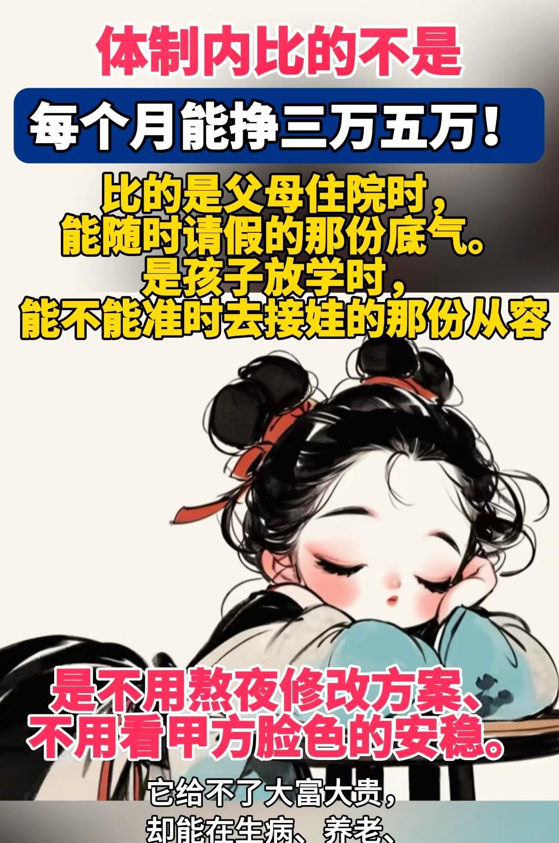 编制内也分是什么部门和什么岗位,有些岗位可不是想象的那么轻松。有些单位可没星期天随时都加班,也有可能6点才下班,七八点才到家也很正常。加班也沒加班费,接送学生也不一定靠得住,所以说也不能一概而论。 我们这郊区有个高档小区,全别墅,离市里说远不远,说近不近的,离最近的商场4公里,周边基本上是啥也没有。我之前还说说菜都不知道去哪买,人家来句家里有保姆不用操心,有钱能使磨推鬼,有钱才有底气!