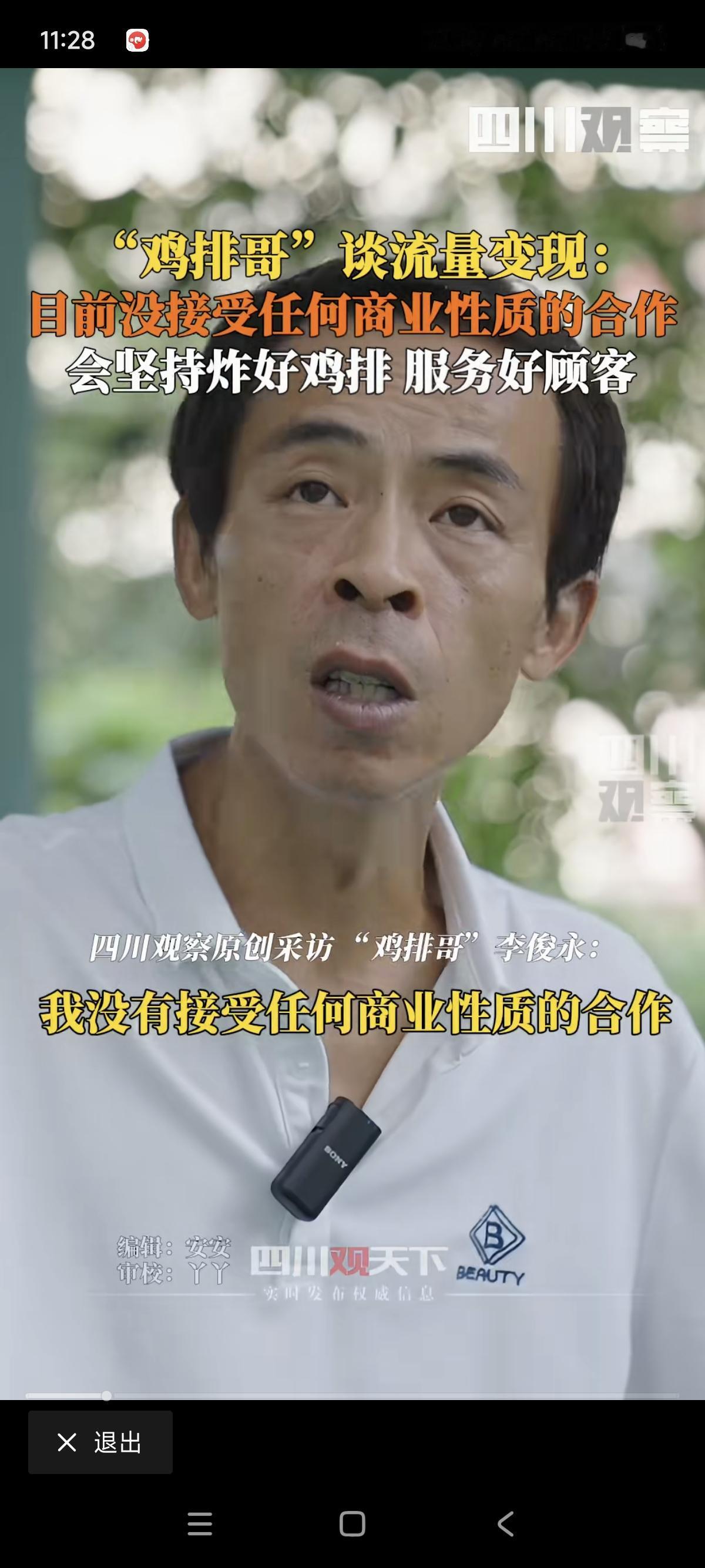 鸡排哥再次被四川四川观察采访,他透露大家不信谣,不传谣,他没有跟任何平台合作,“