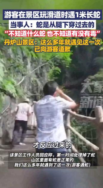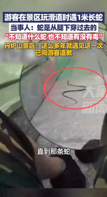 “太吓人了!”10月3日,广西河池,一男子在玩景区内的玻璃滑道时身后忽然窜出一条蛇,他一时没反应过来,直到蛇从双腿之间滑了下去,男子才感觉一阵后怕,网友:这蛇估计也想玩滑梯! 很多山林景区都会设置玻璃滑道娱乐项目,滑道就像一个大型的滑梯,在下滑的过程还能观赏四周的景色,深受游客们喜爱,但是坐滑道的时候可要注意了,说不定会出现一些意想不到的“惊喜”。 一男子带着妻子到景区游玩,看到玻璃滑道后两人觉得很新奇,决定玩玩试试,谁知在下滑的过程中,背后的人忽然惊恐大喊有蛇,男子一时没反应过来。 直到这条蛇顺着滑道从男子两腿之间扭动着滑下去,他才感觉到一阵后怕,男子对蛇并不了解,也不清楚这条蛇有没有毒。 蛇大概率是在滑道半路的树枝上掉下来的,好在滑道并不是“一通到底”的,景区的工作人员在听到呼喊声后及时将蛇拦住,避免吓到其他游客。 事后,景区方面表示这么多年第一次遇见这种情况,工作人员态度很好,向男子表达了歉意,并邀请他们下次再来玩。 不少网友调侃估计蛇也想玩滑滑梯了,其实在山区出现蛇也很正常,这种玻璃滑道一般不会完全封闭,游玩时一定要注意四周的情况! 信息来源:《游客在广西一景区玩滑道遇1米长蛇,景区回应:已向游客道歉》大象新闻