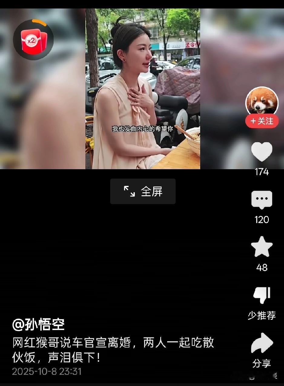 著名汽车评论人猴哥离婚了,跟他新婚不久的妻子离婚了,他们离婚都很有仪式,专门吃散伙饭,而且还拍视频留念,仪式感非常太强了!网红离婚居然没有像普通老百姓离婚一样鸡飞狗跳鸡飞蛋打,而是和平分手,并且给对方送上最美好的祝福,既然两个人眼泪汪汪,为什么不凑合着过下去呢?非要分道扬镳呢!不知道他们结婚这么长时间以来,离婚了双方是如何分配财产的,毕竟猴哥家底丰厚。女方不可能一分钱都没有分到,就如此心甘情愿的离婚吧!