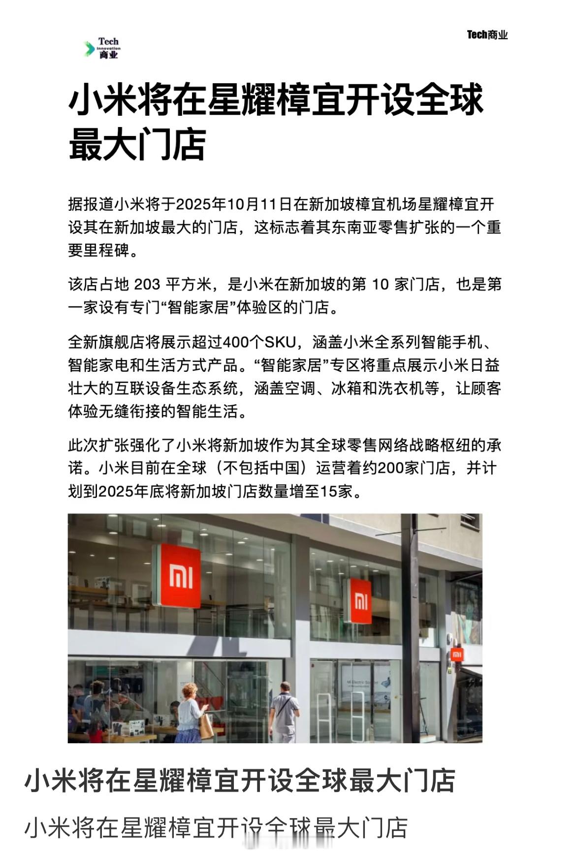 小米之家海外起飞了,疯狂开店,将在新加坡开设最大门店,400个SKU。