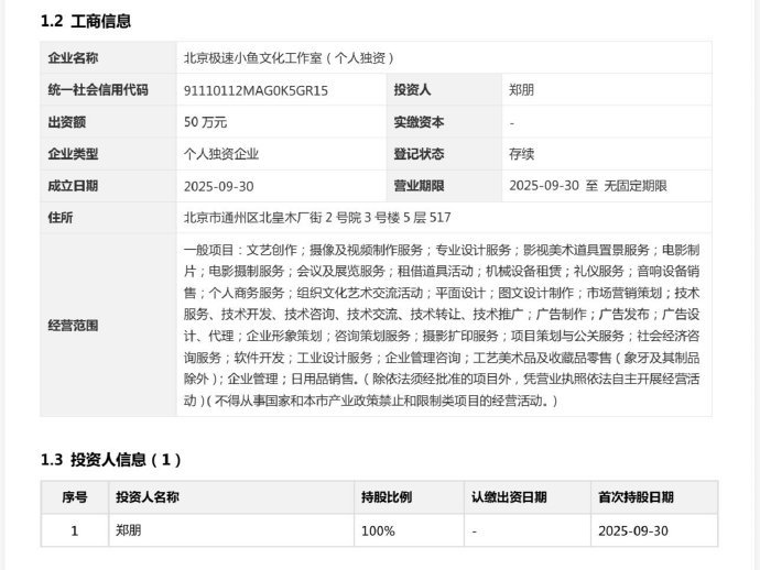 梓渝开公司了 谁能不夸梓渝啊!直接个人独资开公司,这下真成 “郑总” 了!能看出他对自己的未来很有想法,也一直在踏实努力,祝福他新公司一路顺利,越来越好!梓渝工作室个人独资